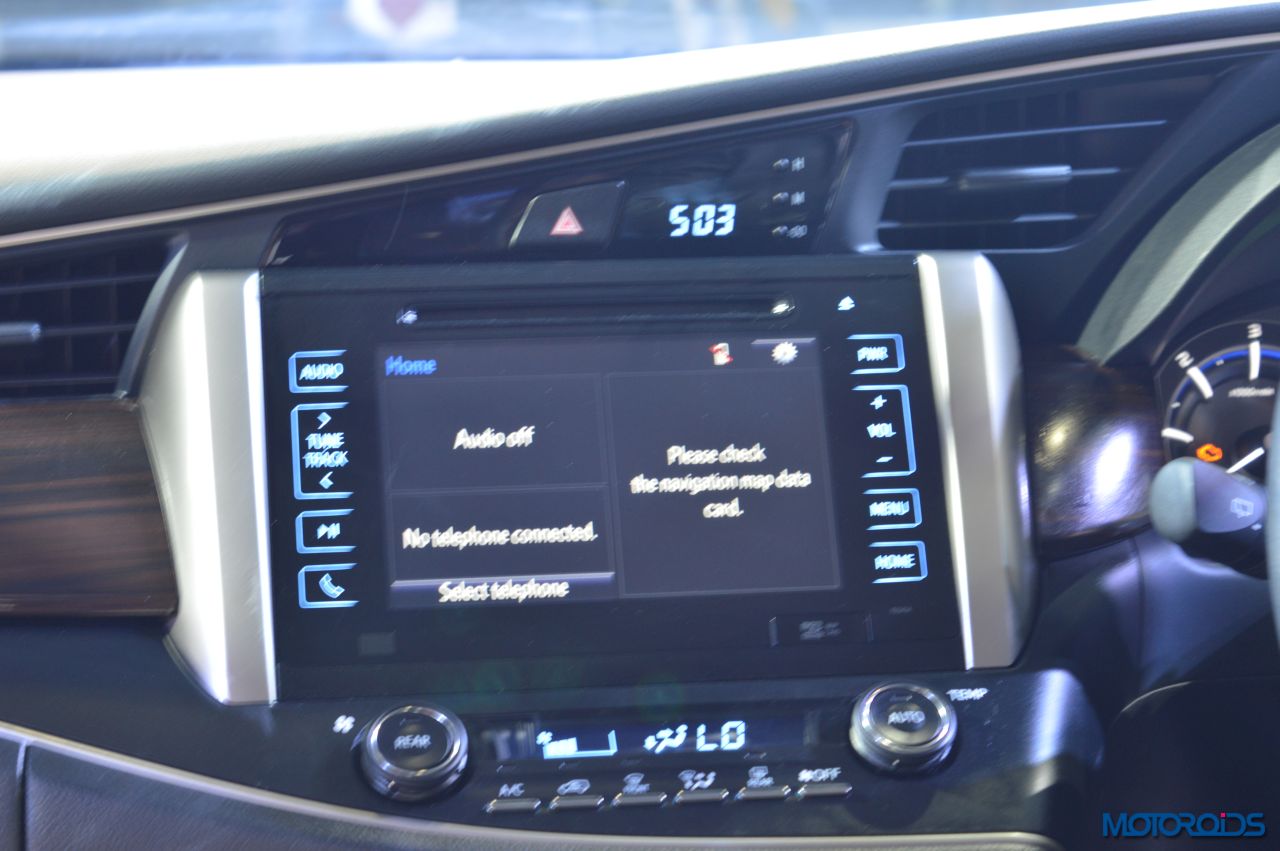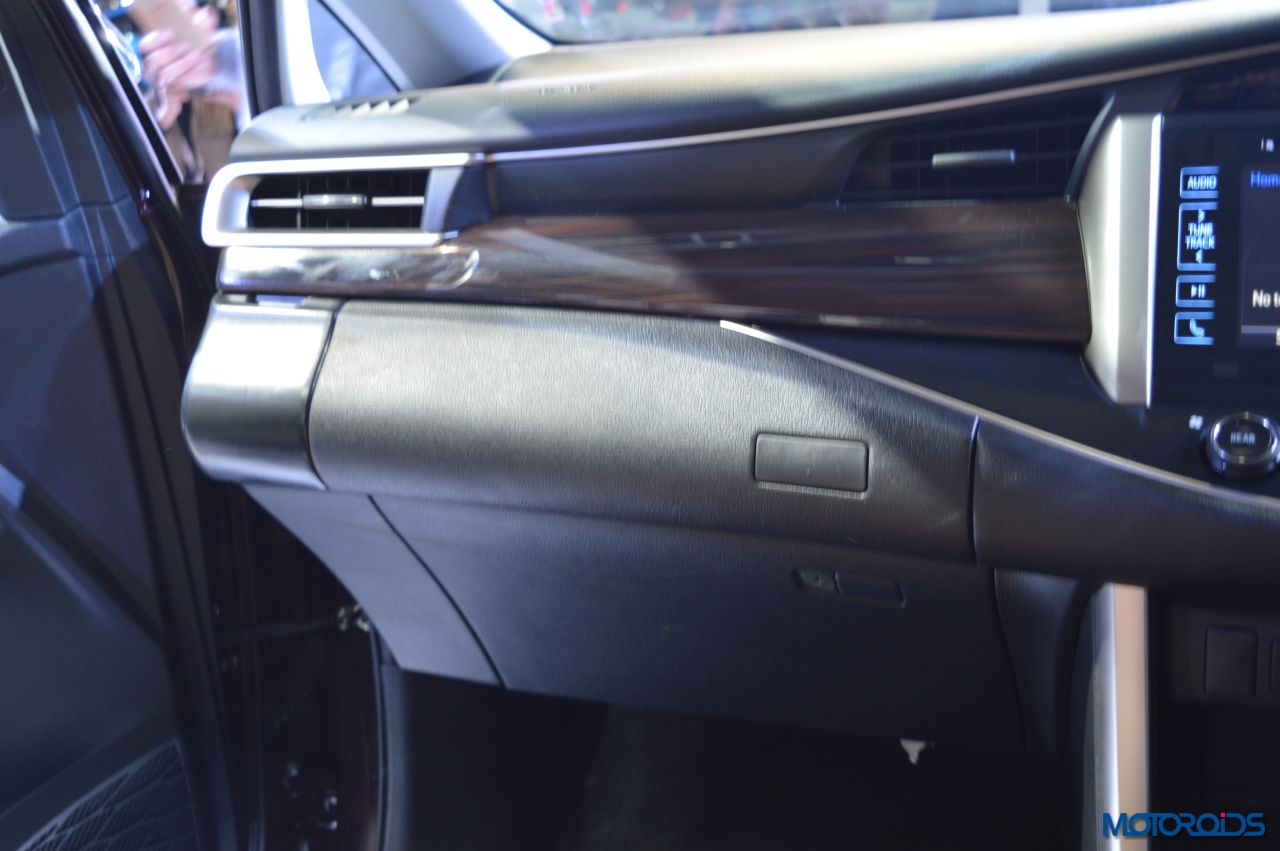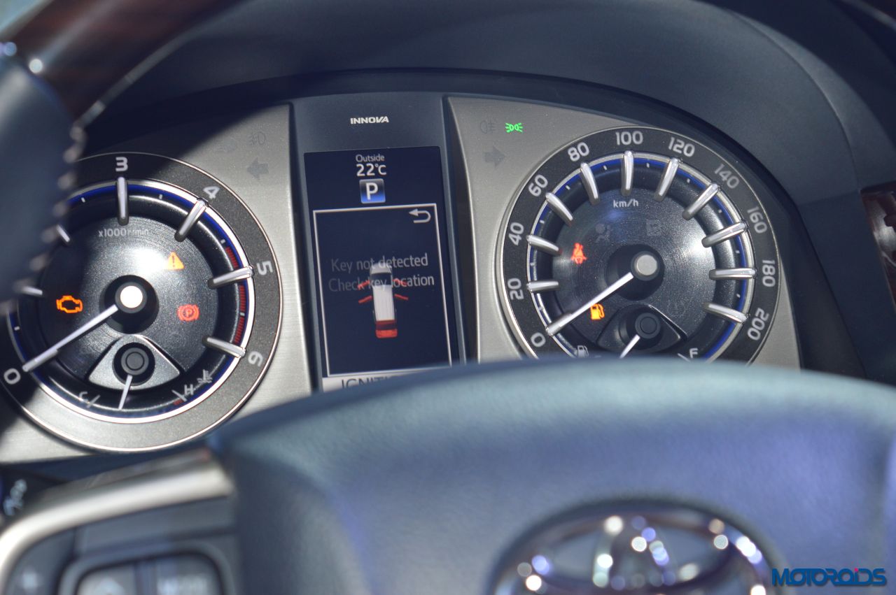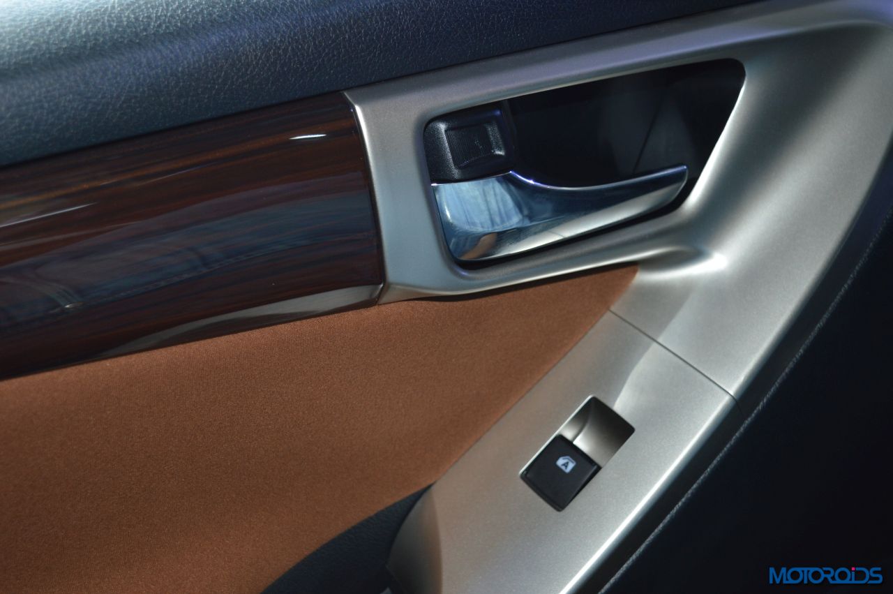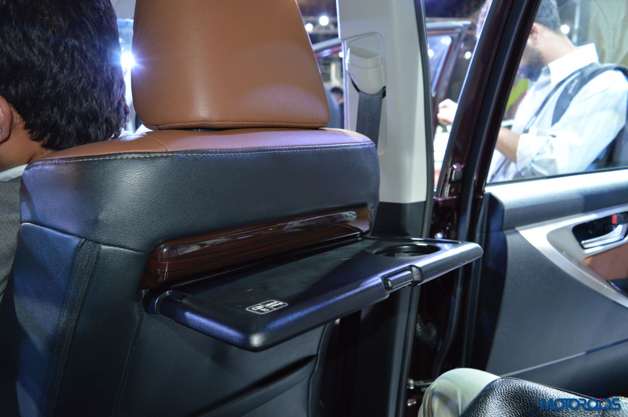 The interiors are also all-new, and the revamped cabin is highlighted by a fresh dashboard. Combining straight lines and well contoured curves, the new dashboard design looks chic, while a choice of faux silver or faux wood inserts up the class. The Innova Crysta will come with features like automatic climate control with Rear Auto Cooler , 7″ touchscreen infotainment system with navigation, cruise control, power driver seat, 1-touch tumble 2nd row seats, 1-touch 3’d row space up seats , Front seat with easy slide from rear, a Smart Entry System with Start/ Stop Button and an Easy Closer back door.