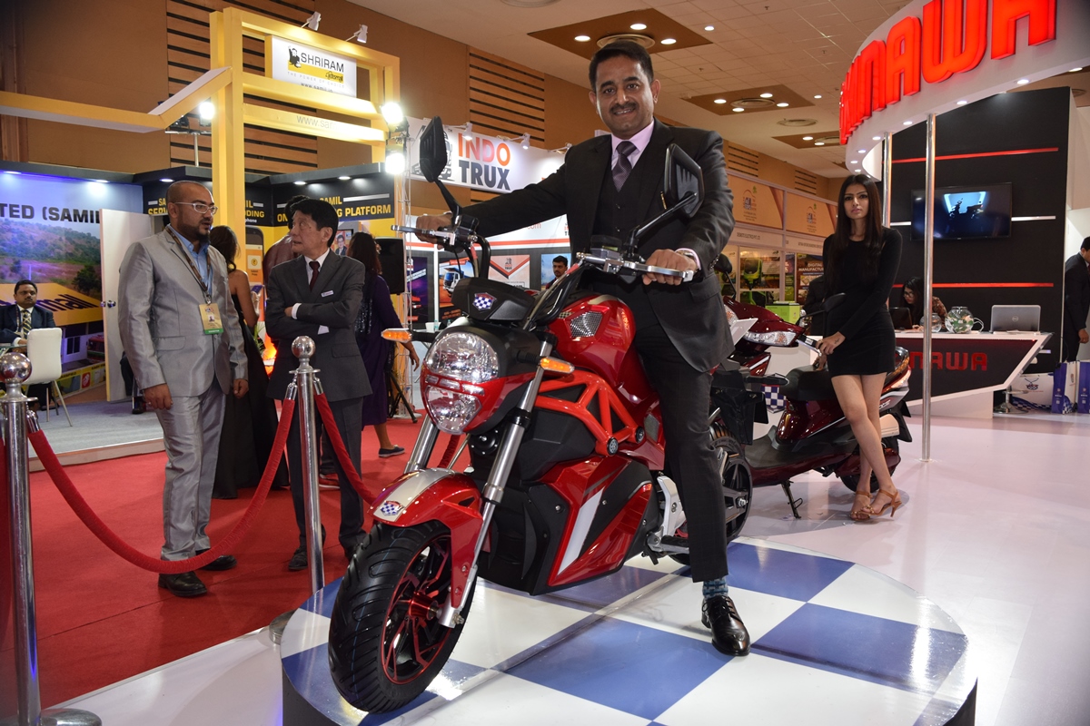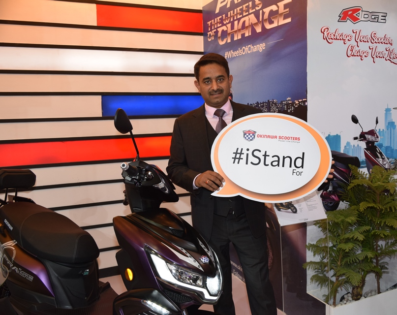 Okinawa Autotech introduced its prototype e-motorcycle, the OKI 100 and the lithium-ion battery version of its e-scooter, the RIDGE at the 2018 Auto Expo in Delhi.