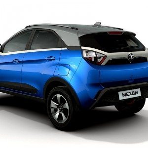 The sloping roofline and rising shoulder line means that the Nexon gets a rather compact rear window. Sharp and compact tail lamps are bridged by a visual continuation of the strip that marks the window line, again finished in contrast colour.