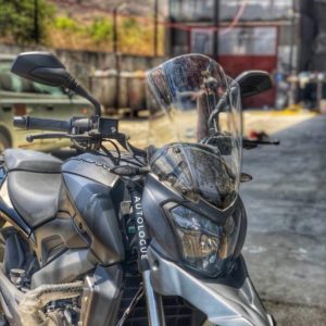 Meanwhile, let us walk you through what will the custom kit will offer. For now, from what we can report after analyzing the photographs, is a tall windscreen upfront which is aimed to offer better windblast. Apart from the windscreen, the motorcycle also features a tall set front fender which is aimed to give the Dominar a rugged fascia. The custom kit also includes a bash-plate that should protect the engine from mud and pebbles while riding off the tarmac.