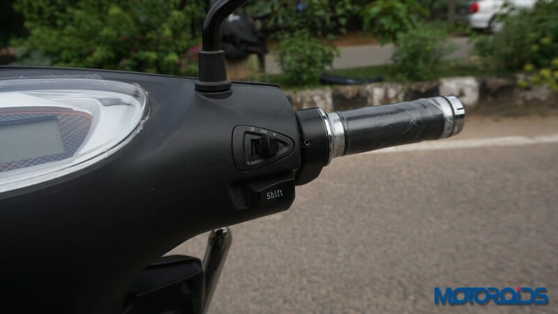 The side stand cuts of the power to the motor. So if the stand is down, the e-scooter won’t move. A nifty little feature we see in some high end petrol scooters off late.