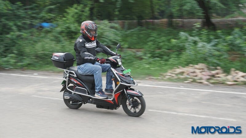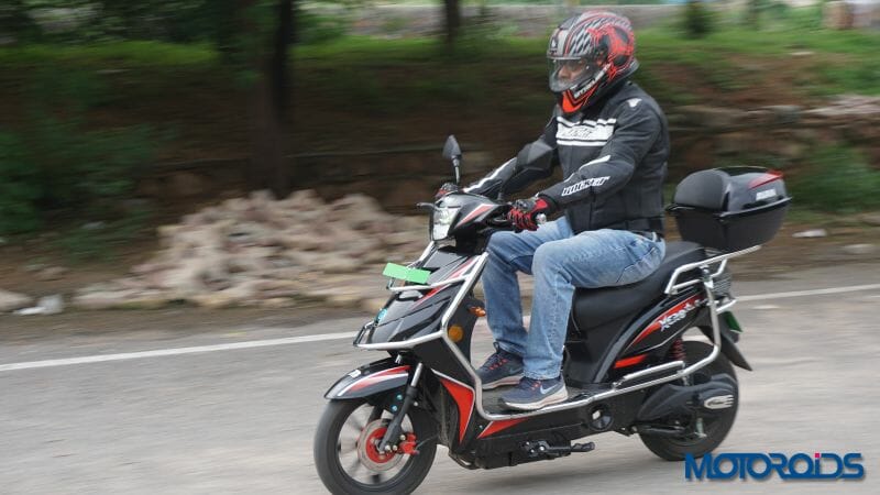 The batteries are mounted under the floorboard and the under seat storage is oddly designed. It is quiet deep but not wide enough for even a half face helmet. That is when the rear mounted storage box comes in handy. For the three weeks I had the scooter, I kept my helmet in the box itself, not having to carry it up and down from my apartment. I even used it for some grocery shopping. The total weight carrying capacity of the scooter is 150 kgs which is more than enough unless you are a Sumo wrestler.