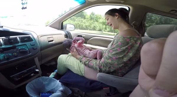 Sitting in the front passenger seat, the lady, named Lesia Pettijohn, can be seen screaming in pain and breathing through her contractions. Jonathan, her husband, who was doing double duty as driver and cameraman remained outwardly calm as she screamed, realising that the baby is about to be born. By the time he helped her undo her seatbelt and pull down her leggings, the newest member of their family has arrived.