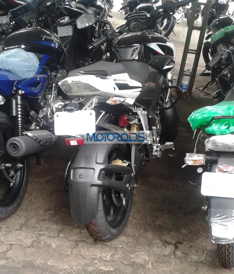 Bajaj may soon introduce a more premium set of tyres for its most powerful Pulsar motorcycle yet. A Pulsar 200NS motorcycle was spotted with a new set of MRFs tyres rather than the TVS Eurogrip units. Avid Motoroids follower, Ajo Anil shared the photographs of the Pulsar 200NS with a new set of MRF Revz tyres which are made of a softer compound material. The new tyres would provide the Pulsar 200NS with better road grip as compared to the existing units, especially around the corners. The picture seem to have been snapped at one of Bajaj’s warehouse.