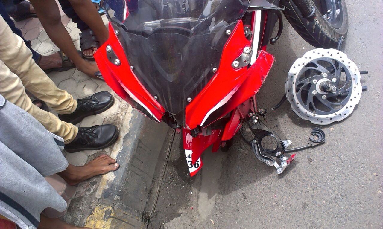 If a recent post by Facebook user Mohsin Patel, his Bajaj Pulsar RS200 is the reason behind a major accident involving his wife and himself. The incident, according to the complainant, happened when he applied brakes while riding on the highway; all of a sudden the wheel allegedly broke and tossed the occupants off the motorcycle, on the tarmac. Both the riders reportedly suffered some serious injuries and were hospitalized.