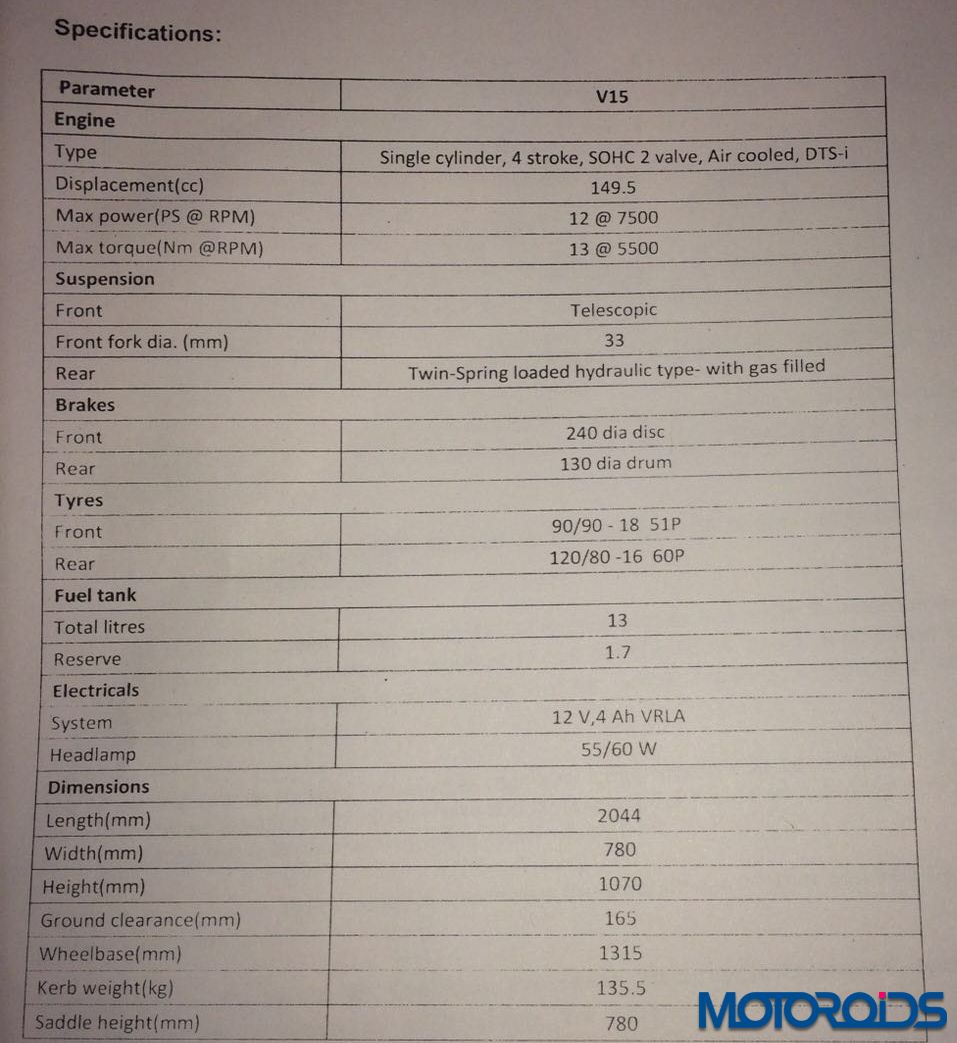 The motorcycle has been named as Bajaj V. The product gets a V15 tag on the side panel which hints towards a 150cc motor.