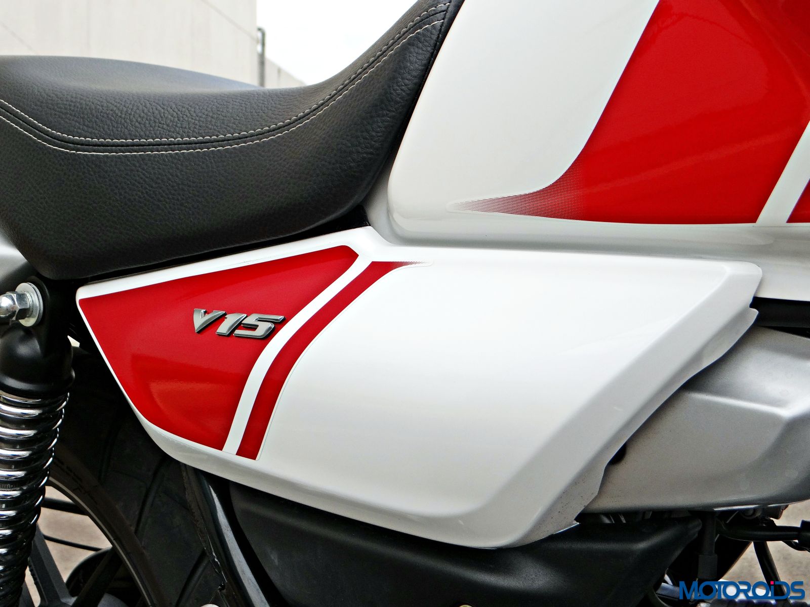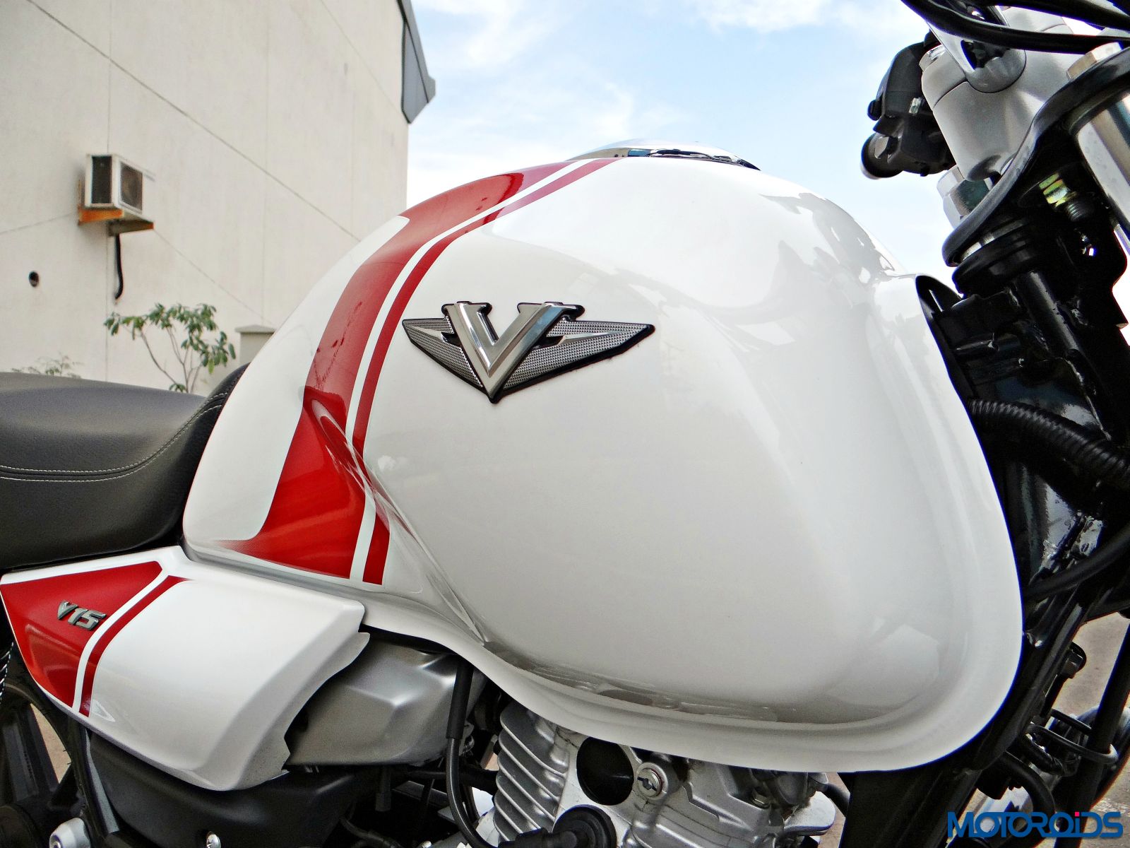 The chiselled fuel tank gets a 3D chrome V emblem while the side panel gets V15 badge