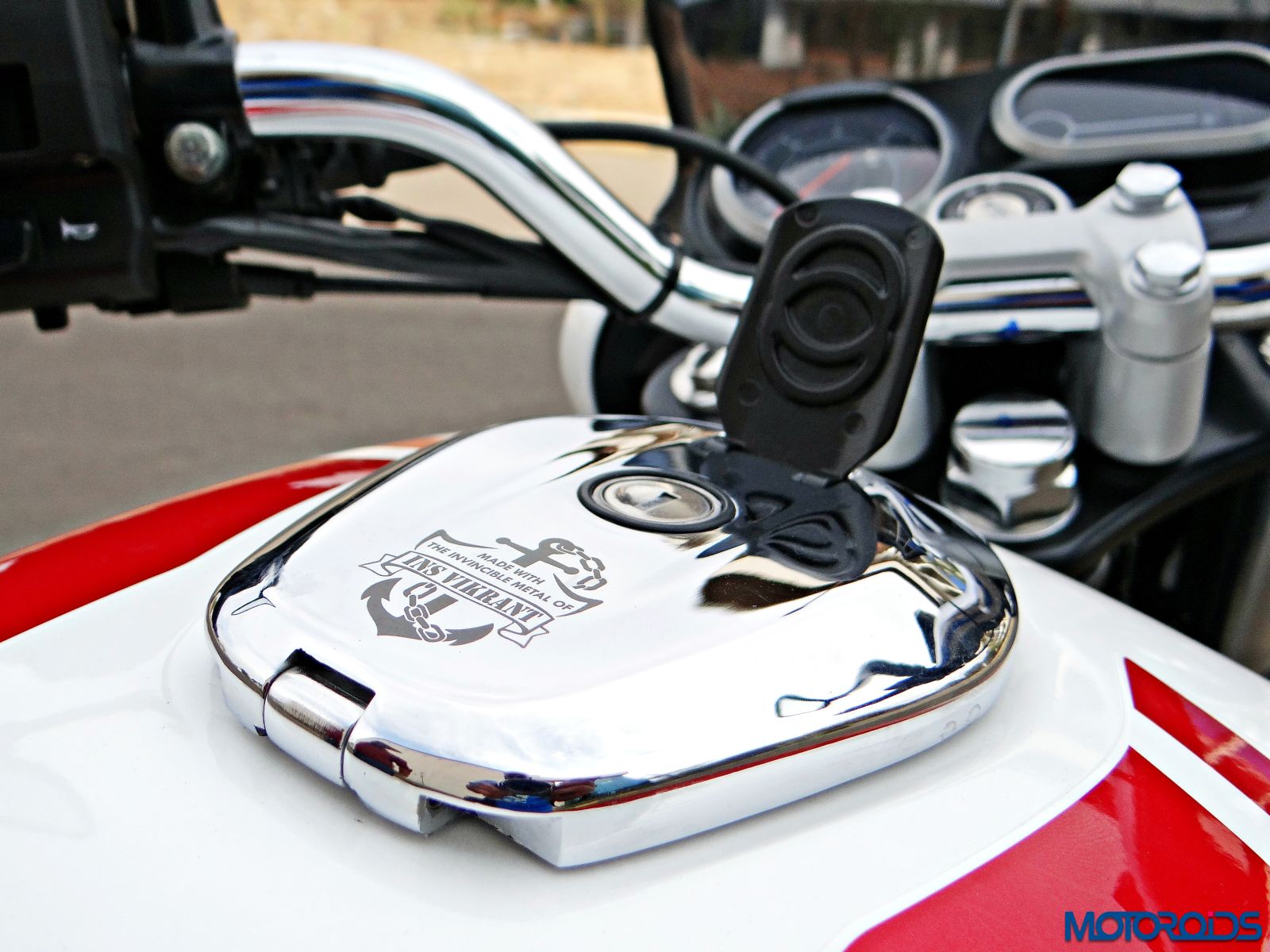 The fuel filler cap also gets a laser engraved anchor logo with “Made with the invincible metal of INS Vikrant” written at the bottom
