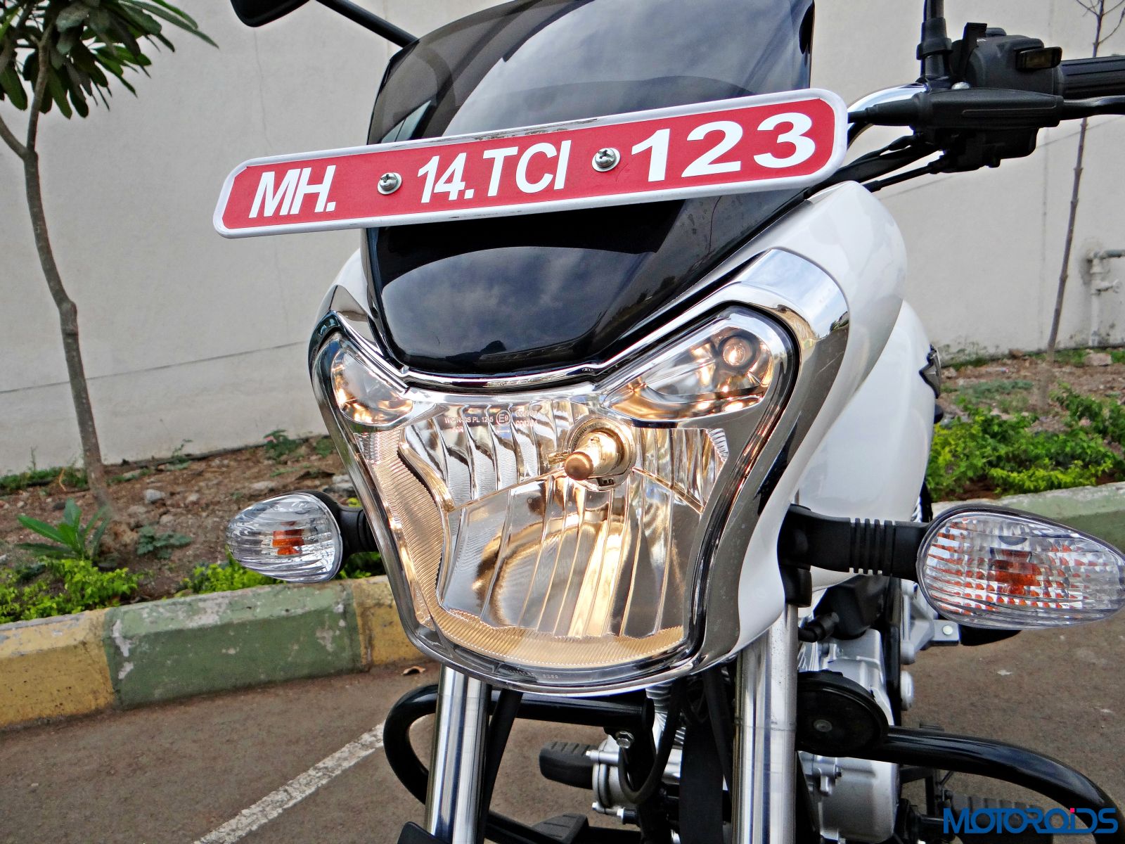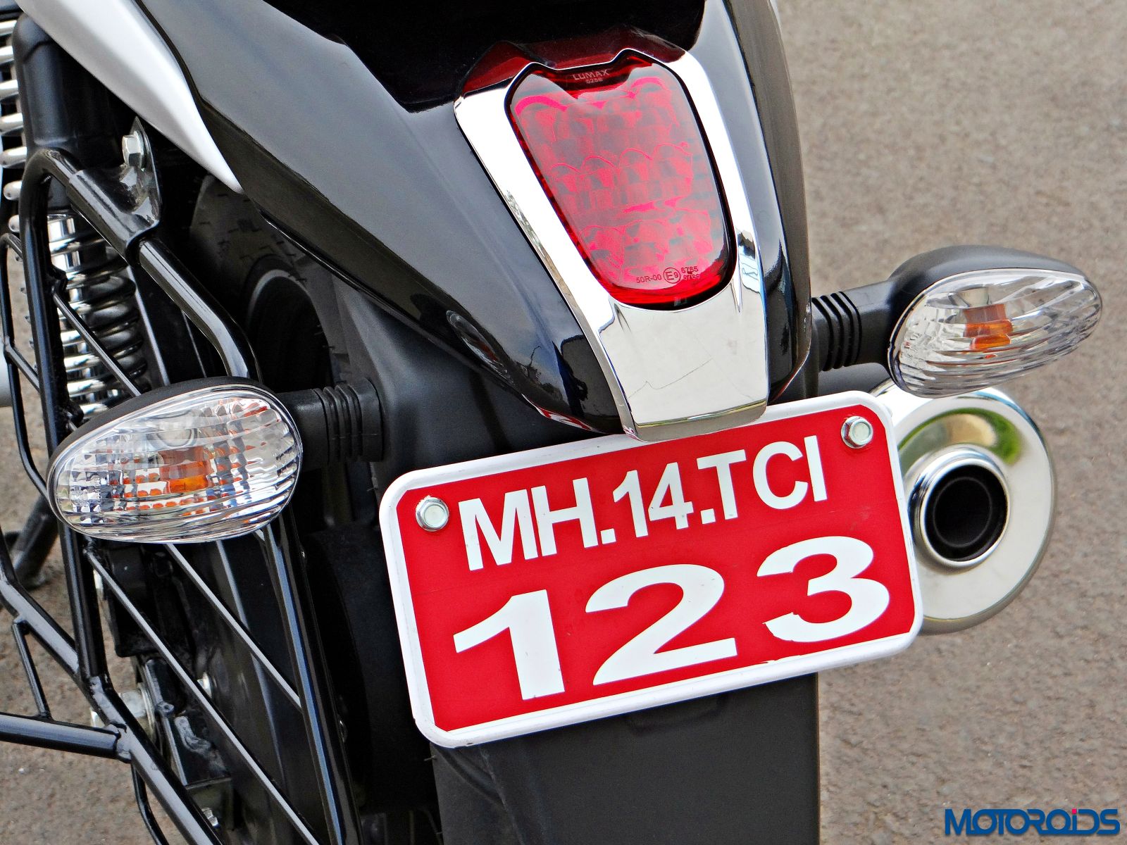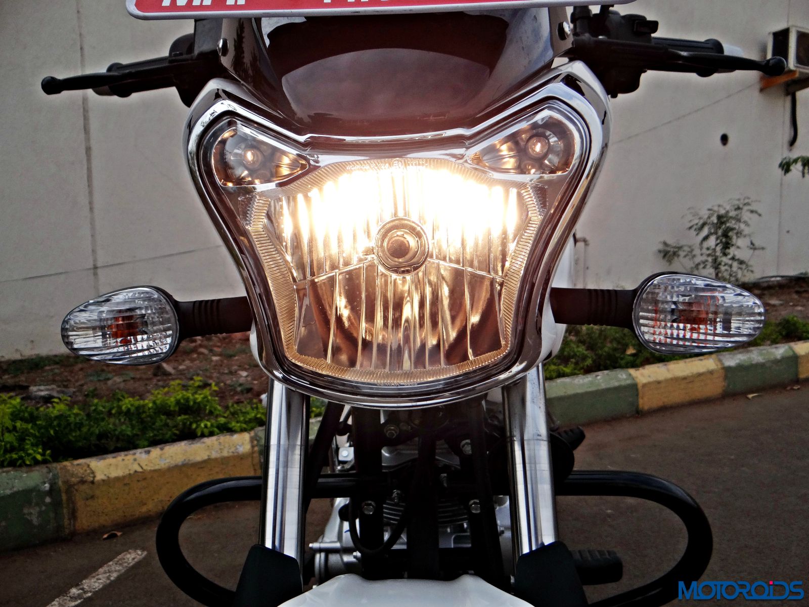 The headlamp is rated at a powerful 55/60W. We rode the motorcycle during daytime only though, and cannot comment about the performance of that unit in the dark