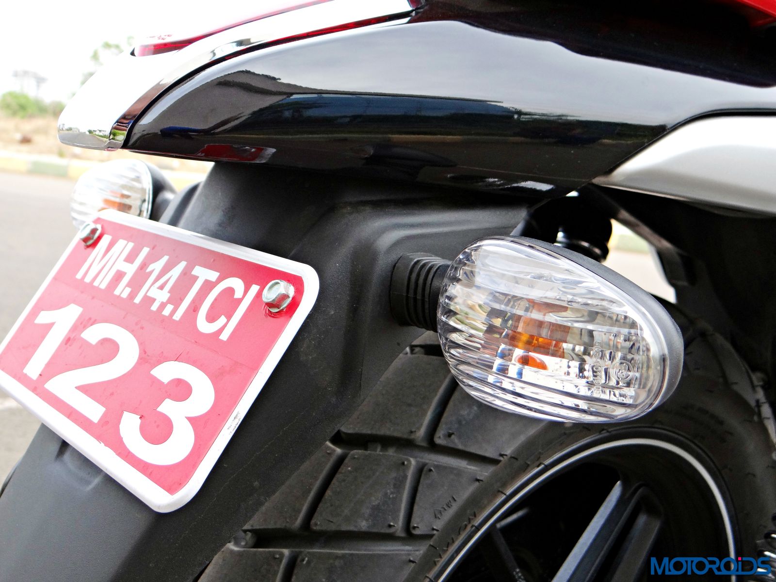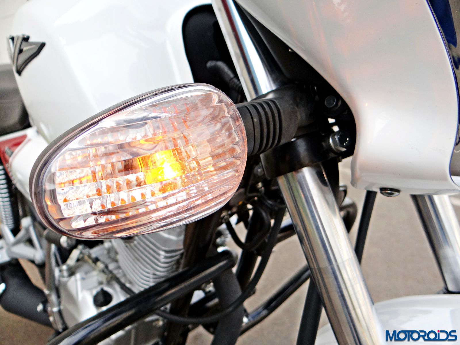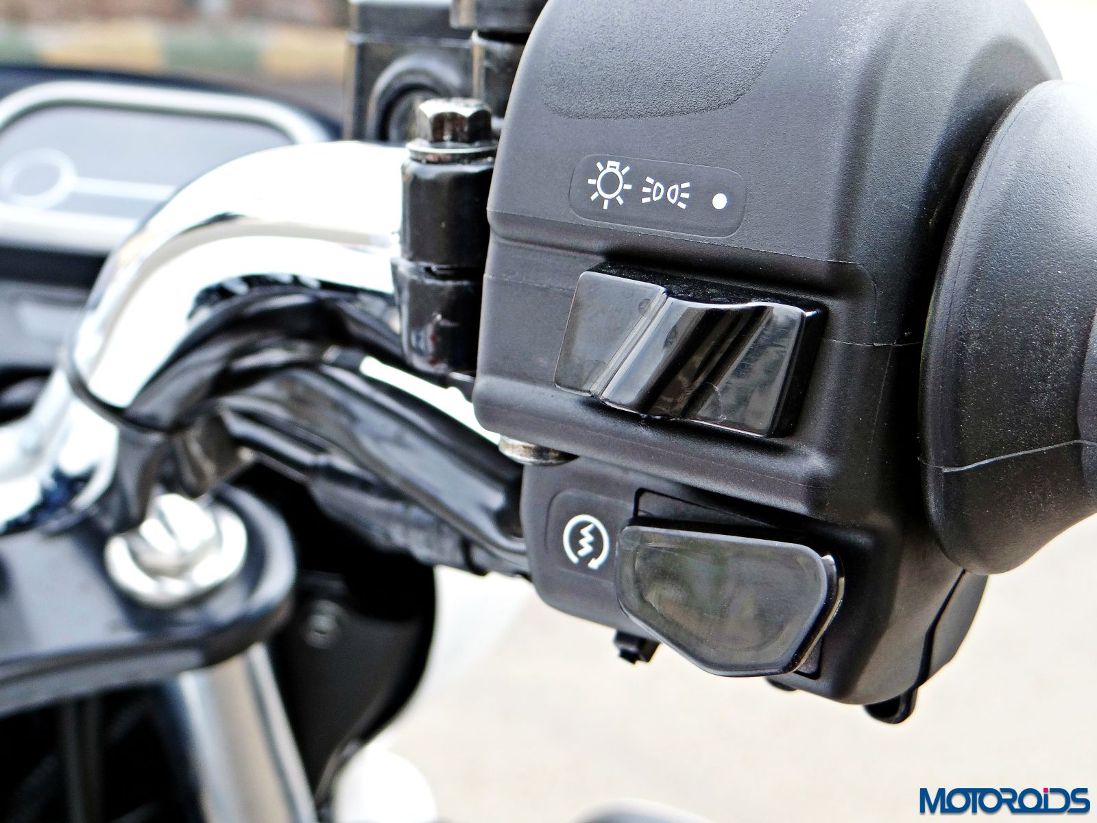 The headlamp is rated at a powerful 55/60W. We rode the motorcycle during daytime only though, and cannot comment about the performance of that unit in the dark