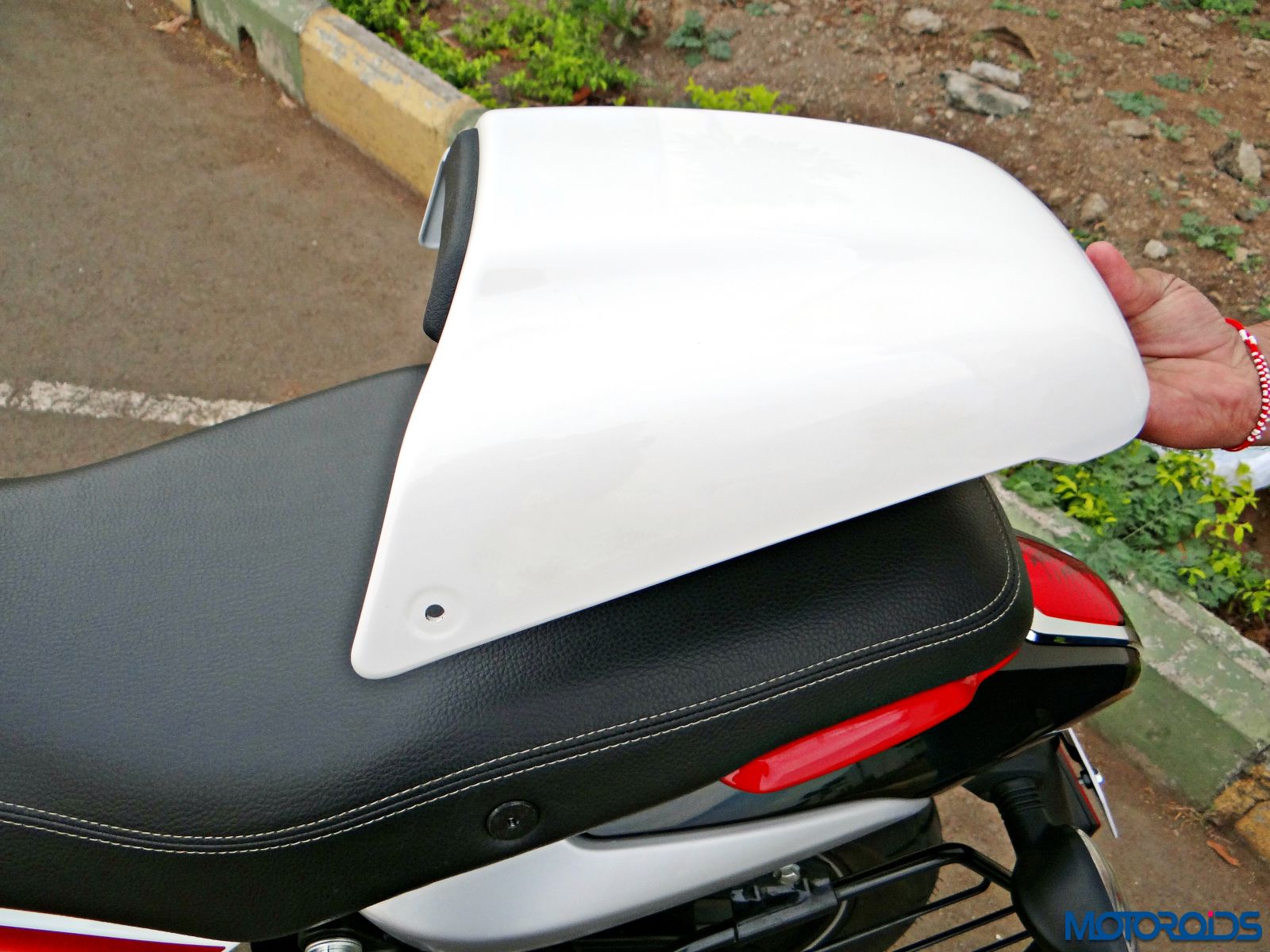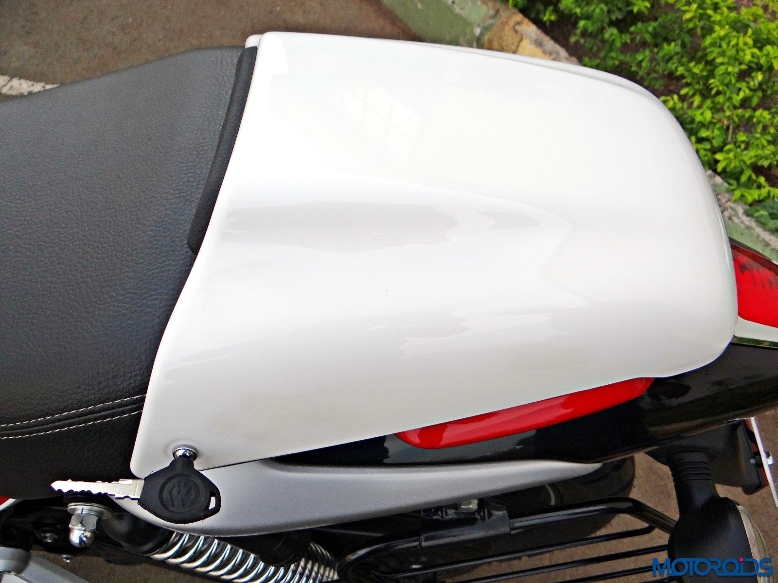 A rear cowl (standard, but gets mentioned separately in the invoice – 1000 bucks extra) covers the rear section of the seat. You can easily remove it in a matter of seconds. The ignition key has an integrated allen key to facilitate this operation.