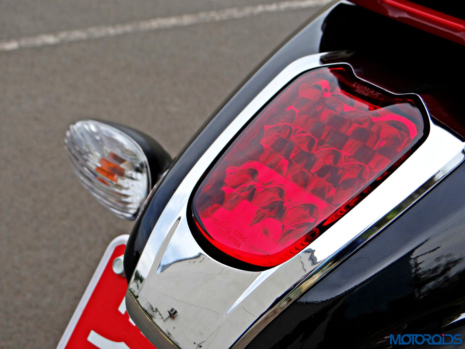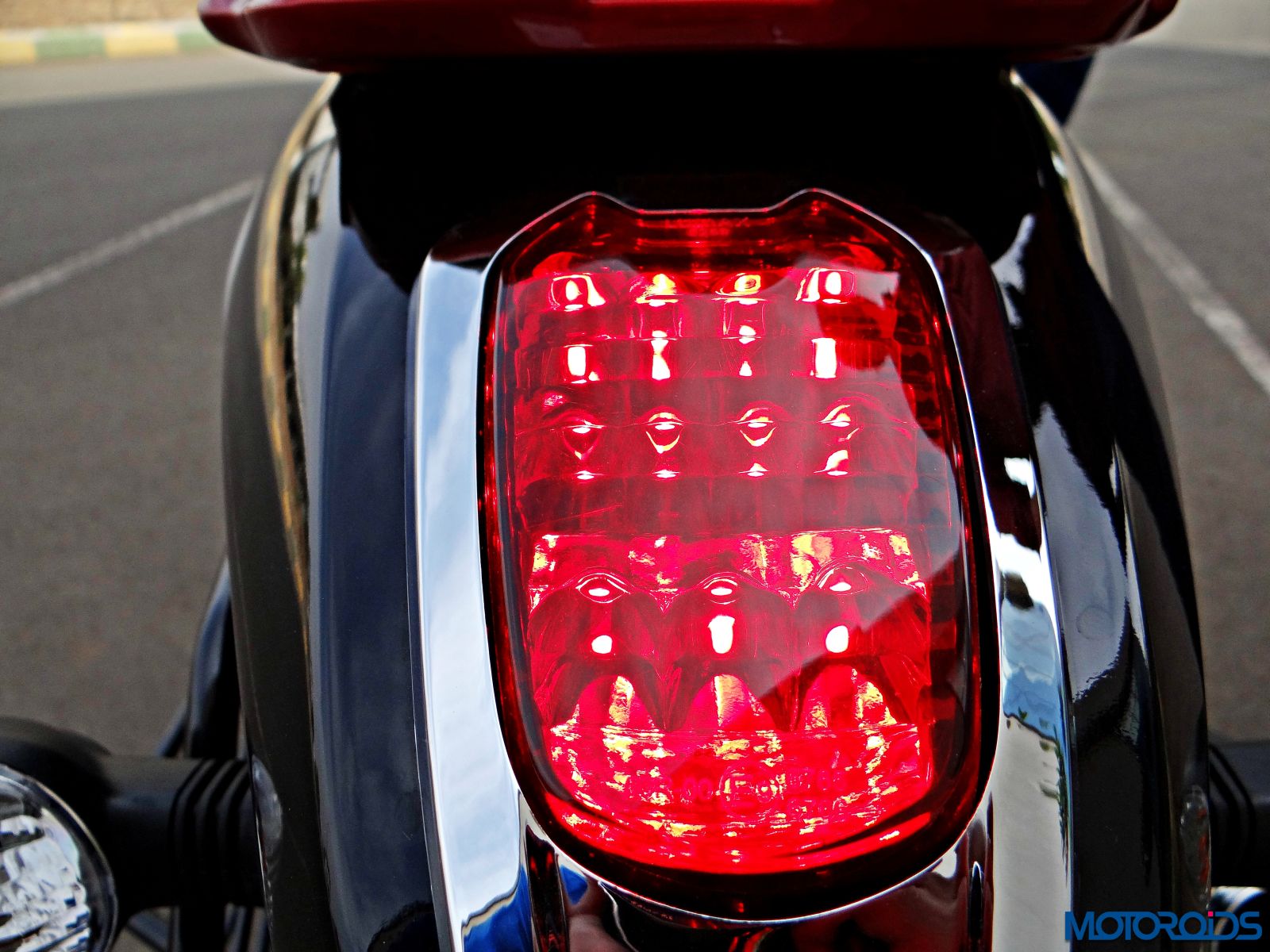 The LED tail light with chrome surrounds lends a retro fell to the motorcycle