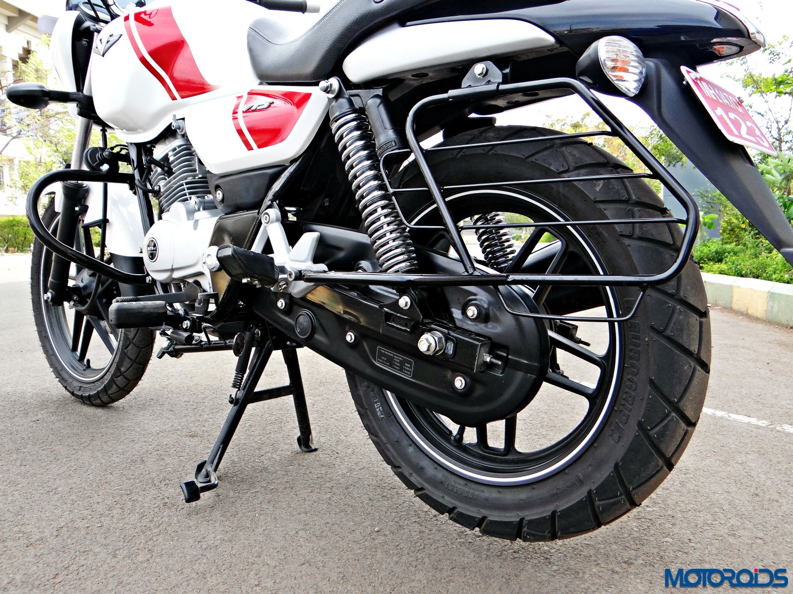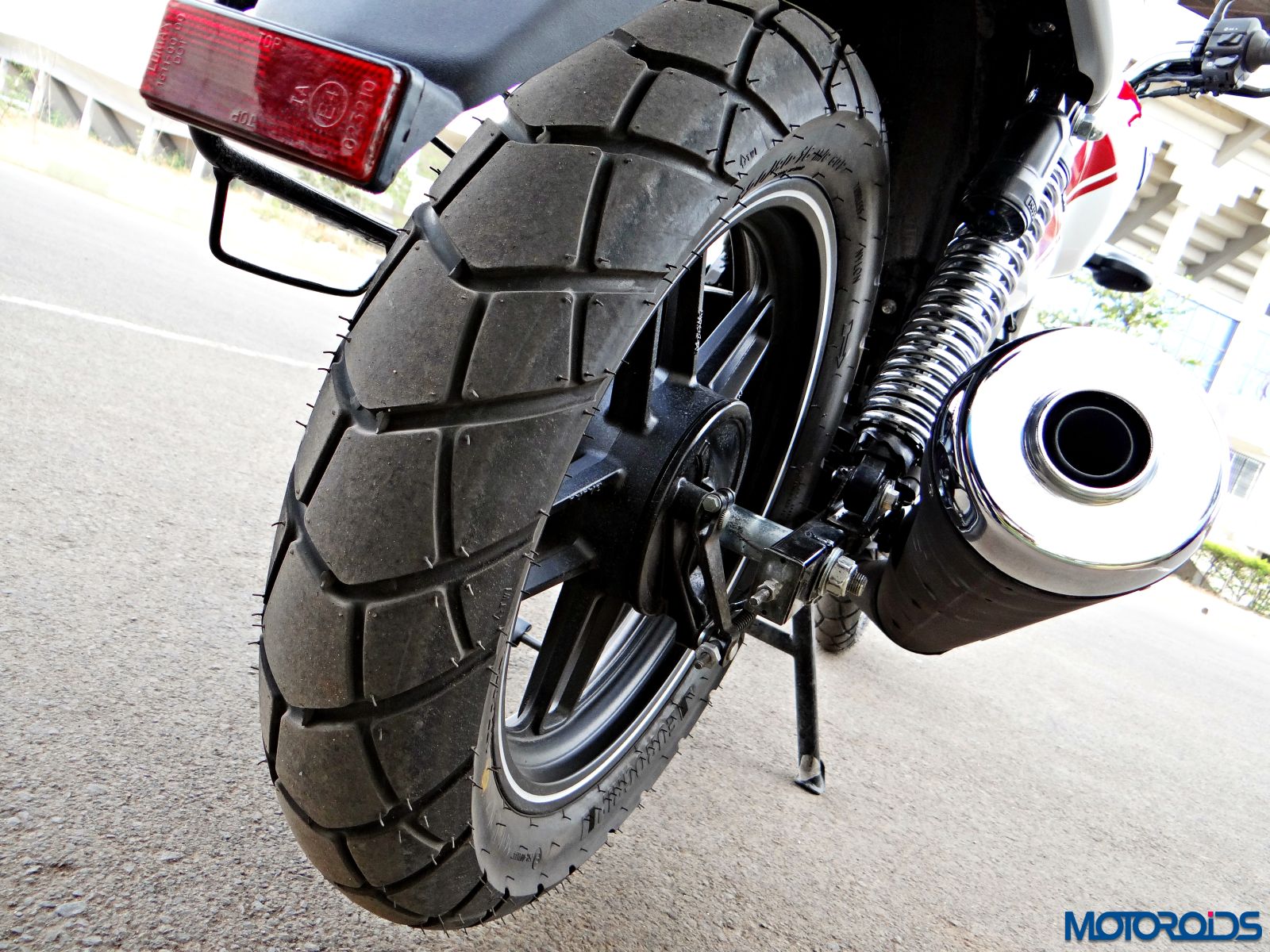 The wheelbase of the V15 is relatively long for a commuter motorcycle, offering it good stability in a straight line. The beefy tyres go well with the design of the motorcycle while also offering decent levels of grip. The Eurogrip rubber that the V15 comes shod with didn’t give us much of a chance to whine, at least while handling the bone dry surface of Pune streets on a scorching hot day.