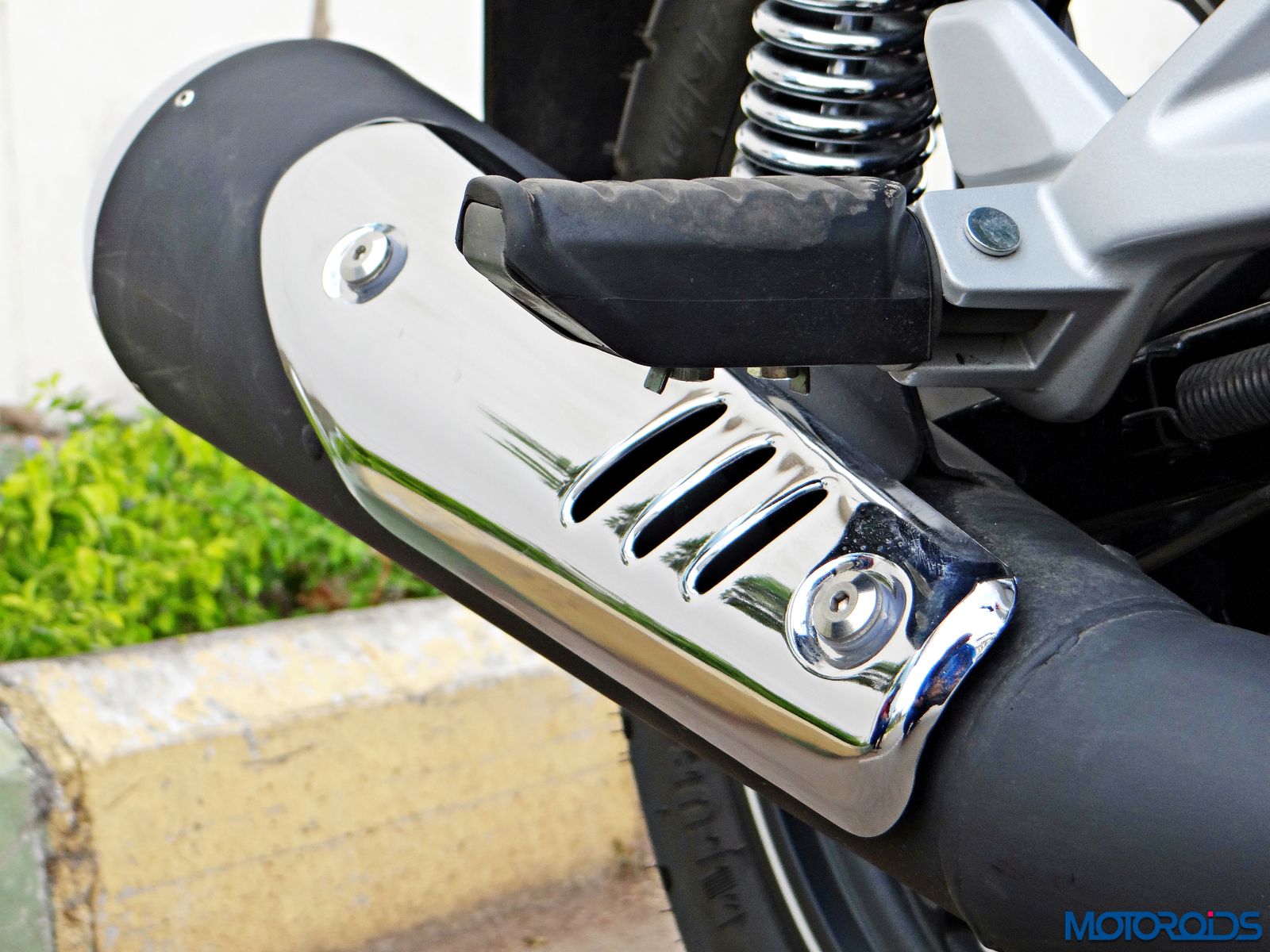 The exhaust canister end, and the heat shield get chrome treatment. That exhaust has a throaty sound and makes the V15 stand apart from its peers.