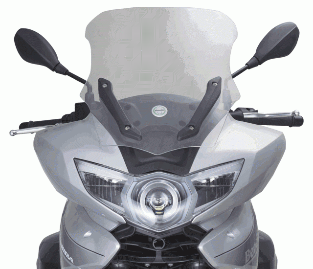 The fascia of the 302 Tourer resembles the 302R although it gets a taller windscreen, a massive front fairing and a tall-set handlebar. The motorcycle also features crash guards for both, front and the rear, along with comprehensive luggage options. The Benelli 302 BJ300GS features hard panniers and a top box which will be offered as optional accessories. Illumination duties are performed by a projector headlight. Safety net include ABS which should be available as standard. The 302 BJ300GS isn’t a proper adventure motorcycle, and thus it features alloy wheels.