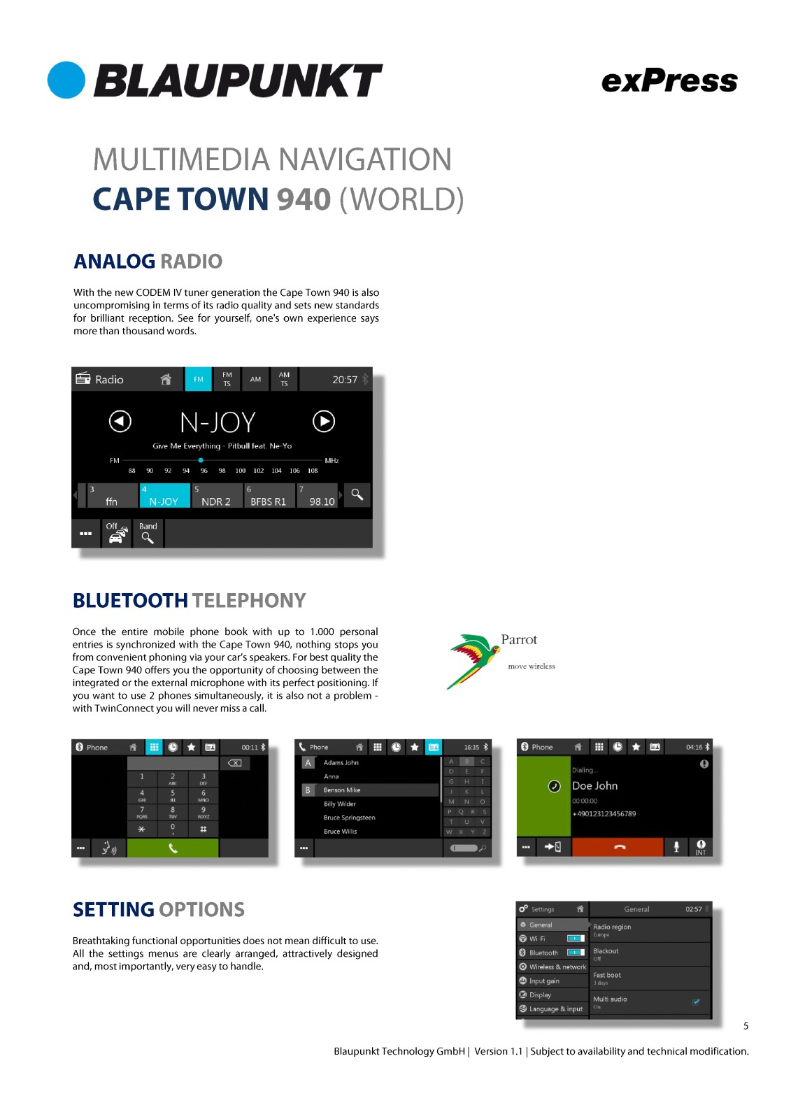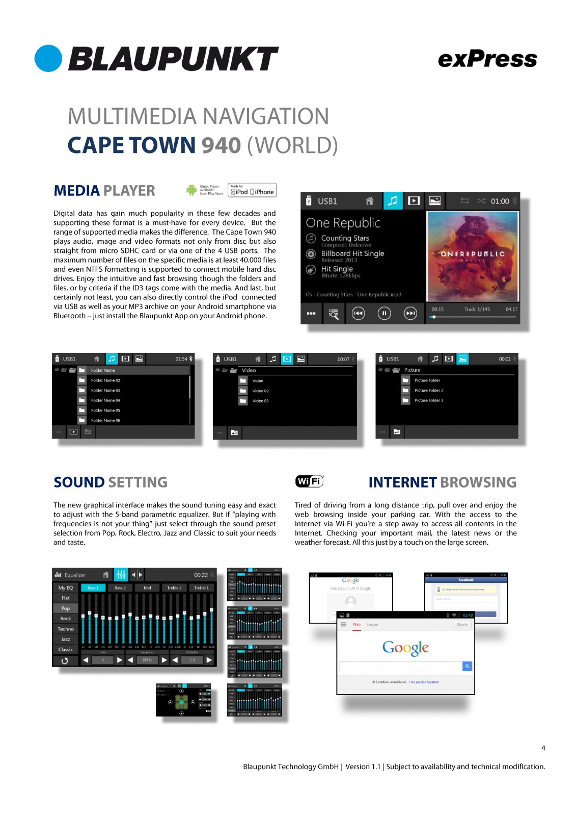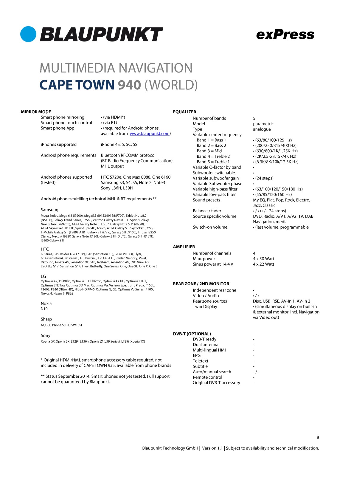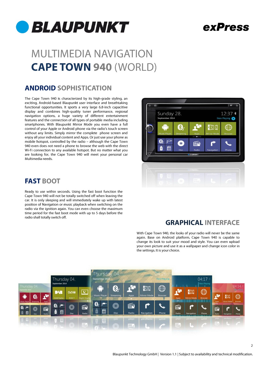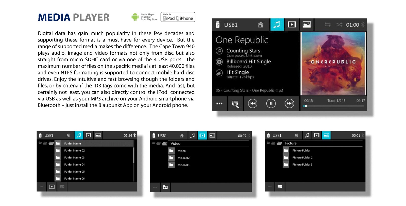 Blaupunkt has equipped the Cape Town 940 with the following: