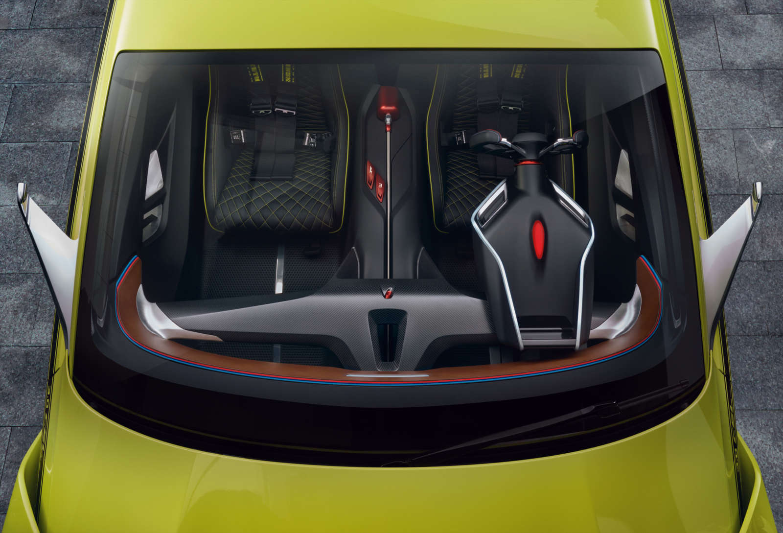The interiors are a show in lightweight design, are a pared down to a minimum. All interior elements are there out of absolute necessity, every part has a structural or drive-related function. In the all-CFRP interior, the only wood-like presence is the “instrument panel” – a cross-member and purely structural element.