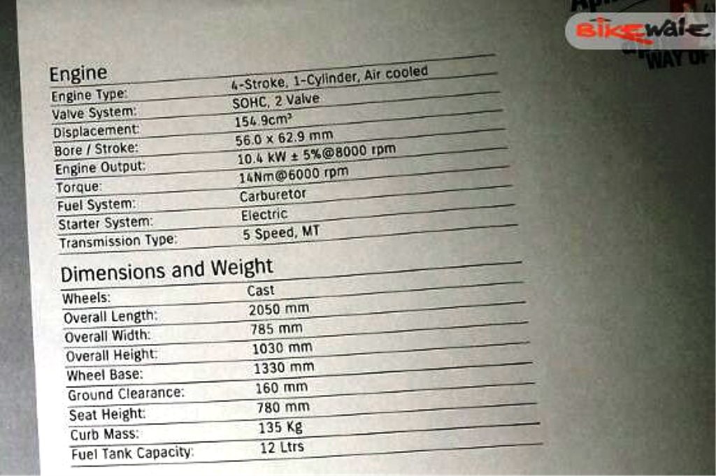 • Displacement: 154.9cc