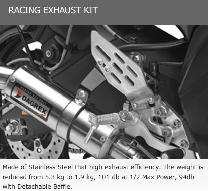Racing ECU: High Throttle Kit: Petal Disc Brake: Racing Exhaust: Support Front Disc Brake Pad: