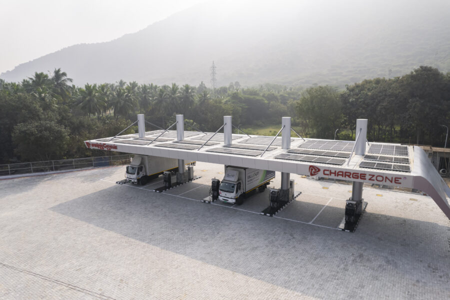 This hub is a prototype for a larger vision: ChargeZone is aiming to have 100 renewable-powered charging hubs along key highways across India by next year. This means that long distance EV drivers and electric freight trucks such as BillionE Mobility can charge using 100% green energy.