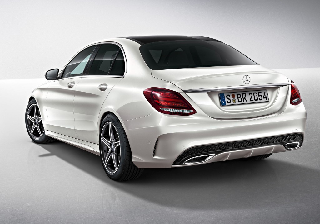 The 2015 Mercedes C Class AMG Line boasts of several new features in its exterior styling. These include- a new front bumper that has a lip spoiler and larger air intake, a larger air intake for the rear spoiler and titanium gray new 5-spoke 18-inch AMG mag wheels. The AMG Line will sport the Avantgarde front grille , a polished aluminum window surround, a blacked out B-pillars, black painted roof and twin exhaust pipes.
