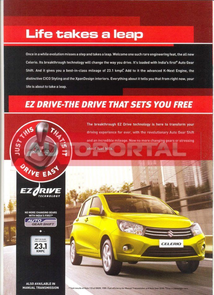 Check out the Maruti Celerio brochure images; Launch soonNews / By Yatharth Singh Chauhan / February 4, 2014 / 2 minutes of reading pics- AutoPortal.com Pages: 1 2
