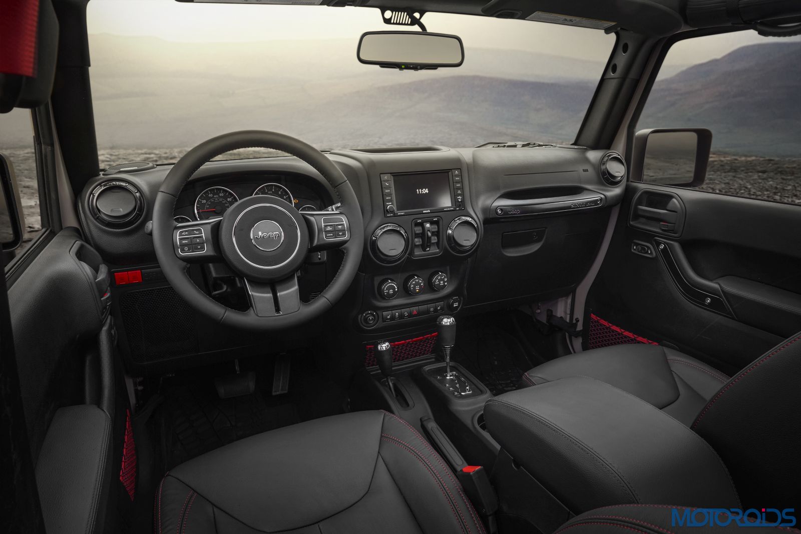 A black-and-red theme characterises the inside of the new Wrangler Rubicon Recon. Red accent stitching adorns the standard black leather heated seats with a “Rubicon” embroidered logo. Black vinyl-wrapped front door armrest and console lid with black stitching, red accent netting on front door pockets and the centre console, unique leather-wrapped steering wheel and red accent coloured seatbelts help to distinguish the Recon from the rest of the Wrangler line-up.