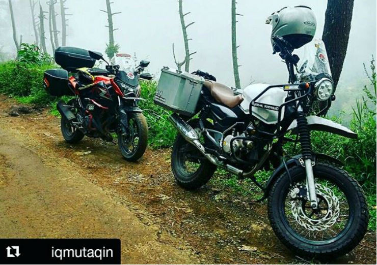 Here’s one Pulsar 150 that’s dressed up like the Royal Enfield Himalayan and it’s done a pretty good job camouflaging itself as the adventure tourer. This one here is from Indonesia.