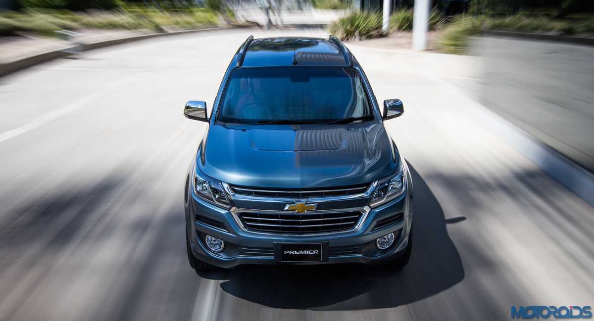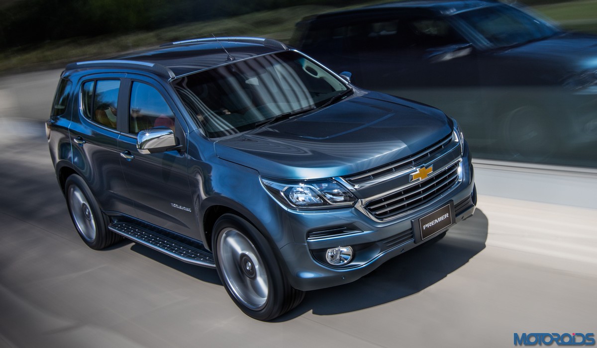 The Chevrolet Trailblazer Premier concept is how the face-lifted version of the brutish SUV will look like, when undone with those Florida-spec 22-inch rims we’re guessing. The rather bland nose of the current car has been glamorised with sharper headlamps, along a new dual port grille rocking classier chrome trim inserts. The front bumper is also new, and along with the new face, make the Trailblazer more urbane to look at – which was the point of this exercise all along. Other new bits include a rear spoiler, rear fascia protector and integrated side steps with bright chrome molding. The new silvery blue exterior finish is called Velocity.