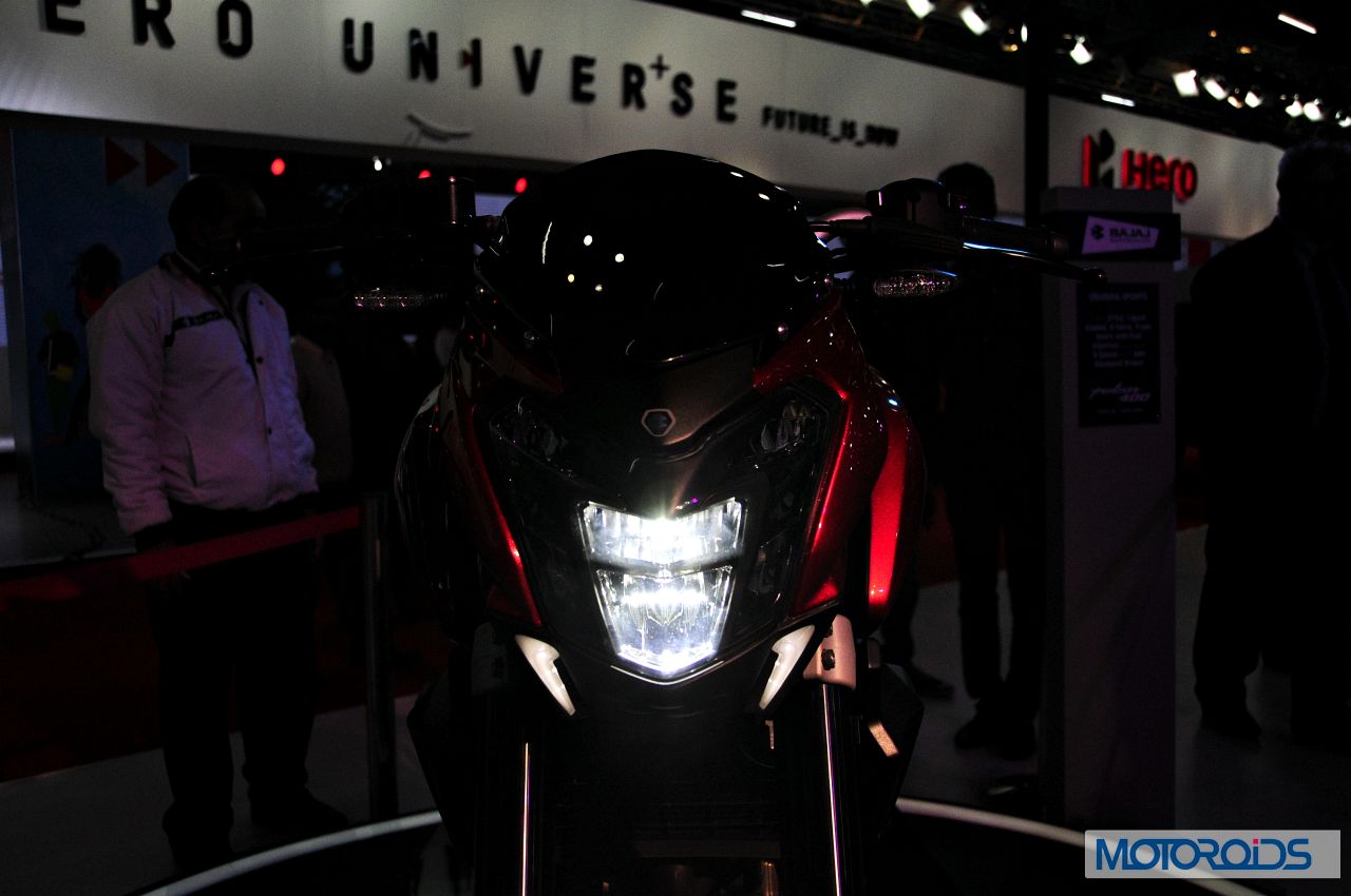 1. Those stunning new headlights are an eight piece unit. While that bit of information is pretty evident, what’s not, is that Bajaj have employed two different technologies in different sections of that headlamp assembly. While the two central units are HIDs, the surrounding six pieces are lit by LED technology.