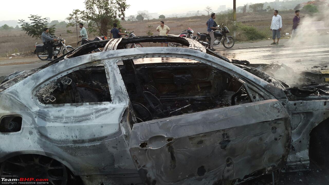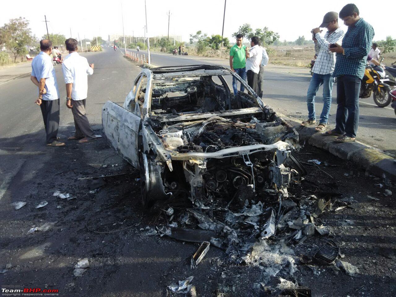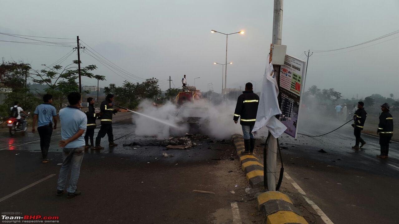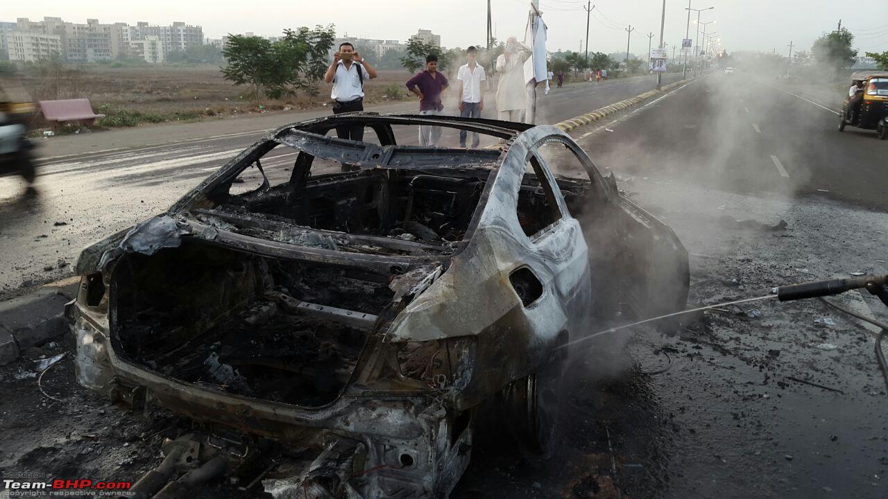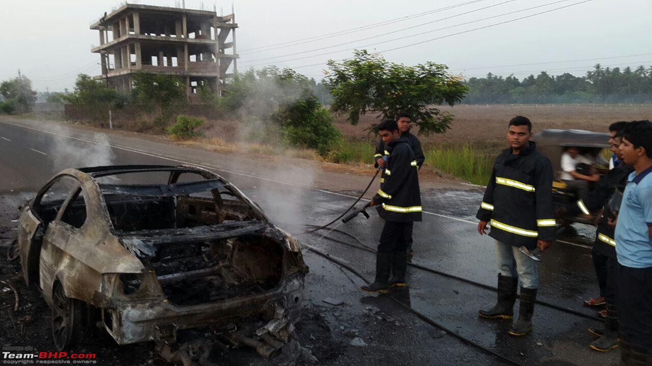 There’s unconfirmed news that the driver tried to damage evidence by setting the car on fire, while some say it was angry locals who torched the car. Fingers have also been pointed at the person riding the scooter for trying to cross the road without an indicator and keeping the headlights switched off. Whose fault was it? Well it isn’t clear, but the driver managed to flee the spot, surrendered himself to the police, and is currently out on bail.