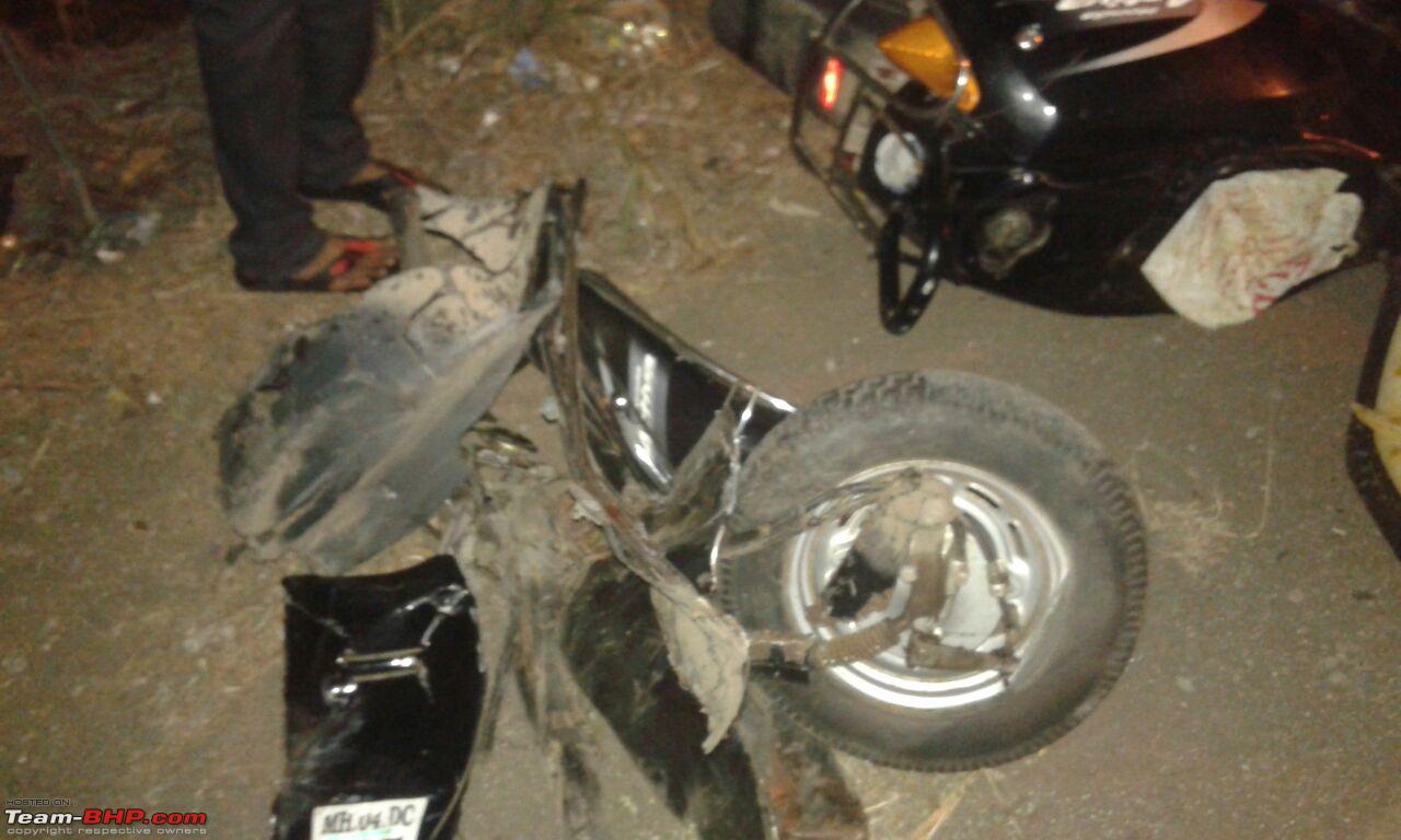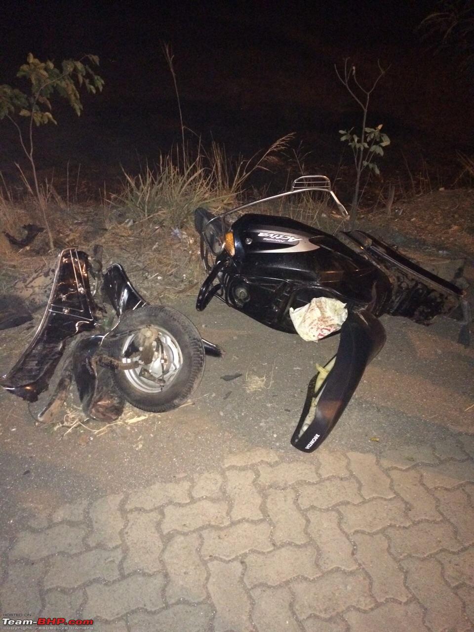 The impact was such, it broke the scoot into two pieces, with the other half thrown a good 10-feet away. The Activa’s 65-year old rider perished on the spot, while the 45-year old pillion succumbed to her injuries in the hospital. Eye witnesses and pictures point towards the possibility of the car being driven on the wrong side of the road, while some say the driver was under the influence of alcohol.