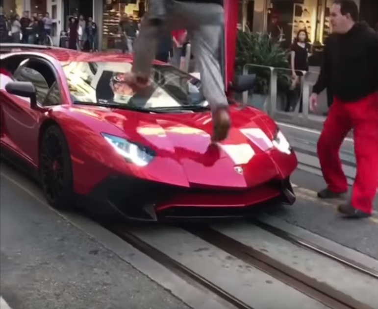 Guy Jumps On Lamborghini Aventador SV Feature Image
