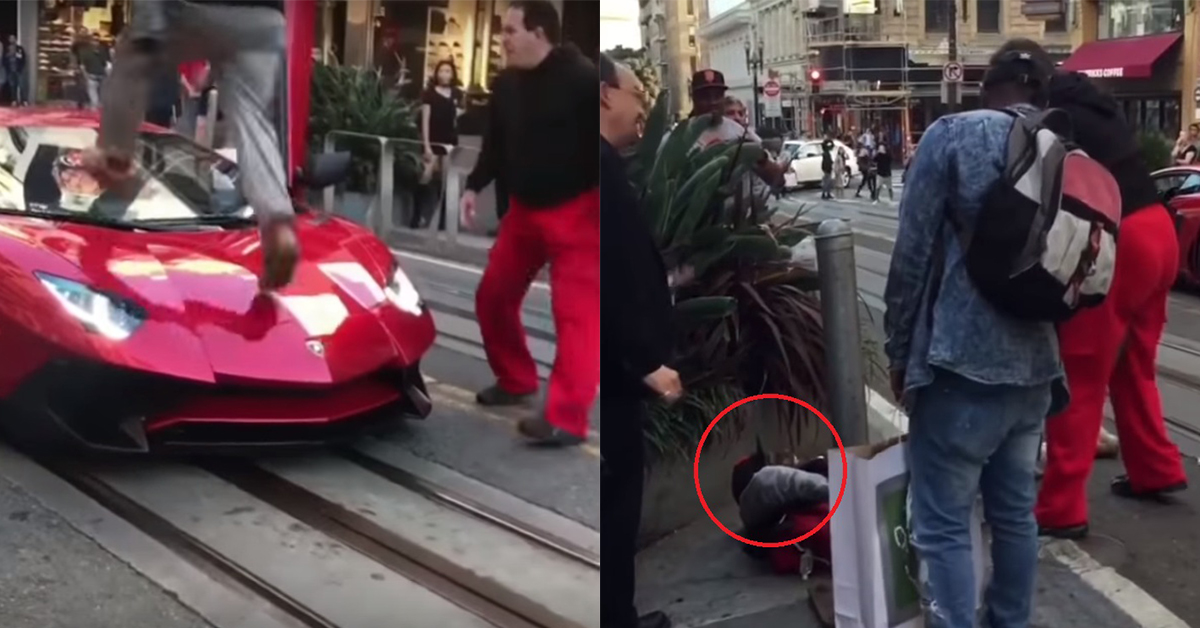 The crazy guy’s actions obviously didn’t win him any praises. The YouTube comments section is full of comments against the prankster. One of the comments read, “What a piece of s**t, if I was a pedestrian there I would of smacked the fuck out of him for the dude in the lambo then ran away.” Another comment which seem to make a lot more sense said, “Oh and then the little ****** is faking injury so he can sue the rich dude…”