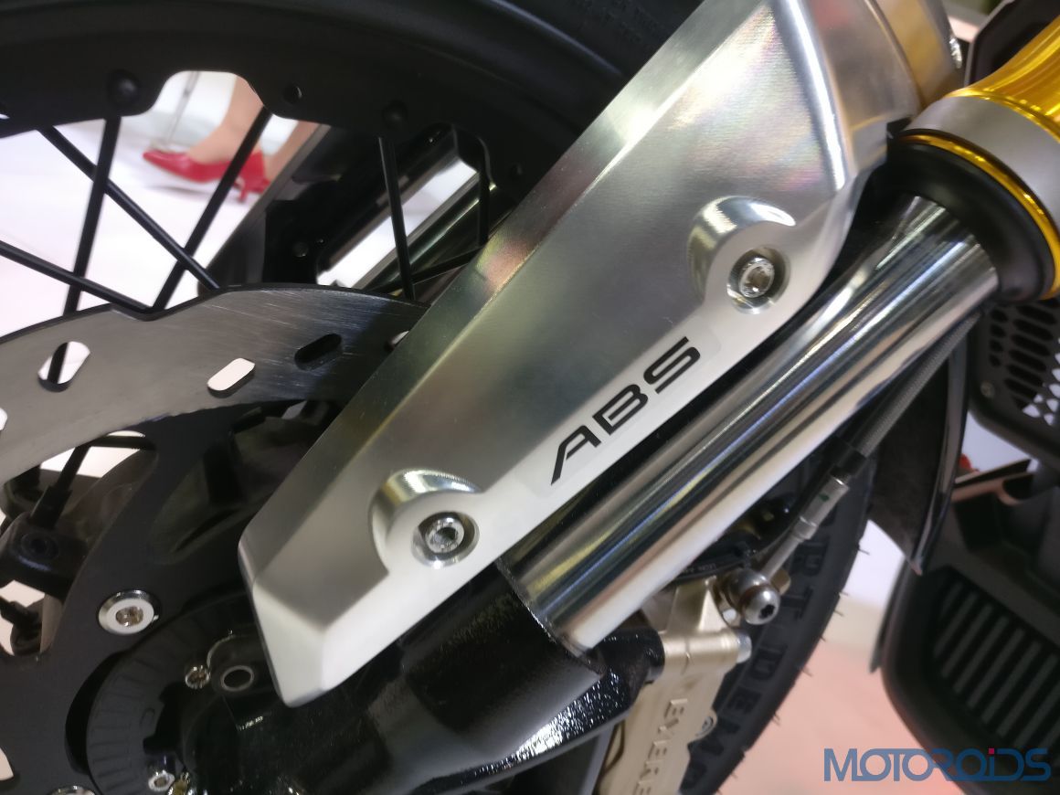 The riding posture of TVS Zeppelin is aggressive yet comfortable, having two-up seat, lowered bars and feet forward highway pegs. The handling of the motorcycle is aided by lightweight tubeless spoked alloys, 41 mm USD forks, dual-channel Anti-Lock Braking System (ABS) and monoshock. Its silent belt drive provides an engaging ride with a dynamic cornering capability added to a superior braking performance.