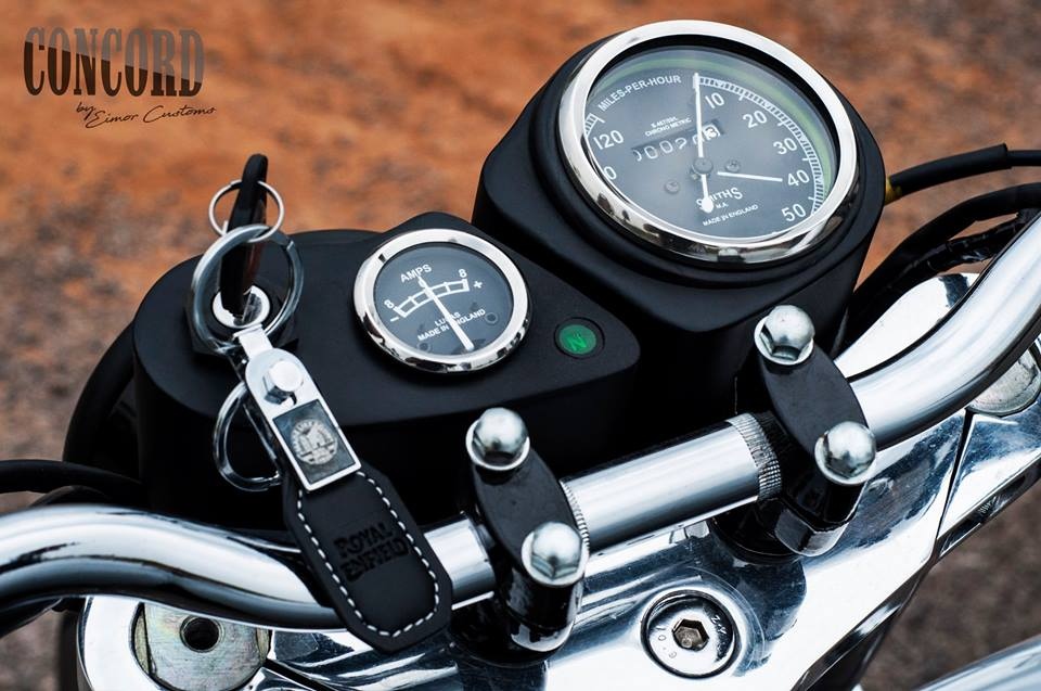But what also stands out for this build is a Smiths made speedometer which is as old-school as it gets and is calibrated to display speed in miles per hour. There’s an ammeter for company and the custom handlebar should make it easy for the rider to manoeuvre this thing in spite of the raised, peanut-shaped fuel tank.