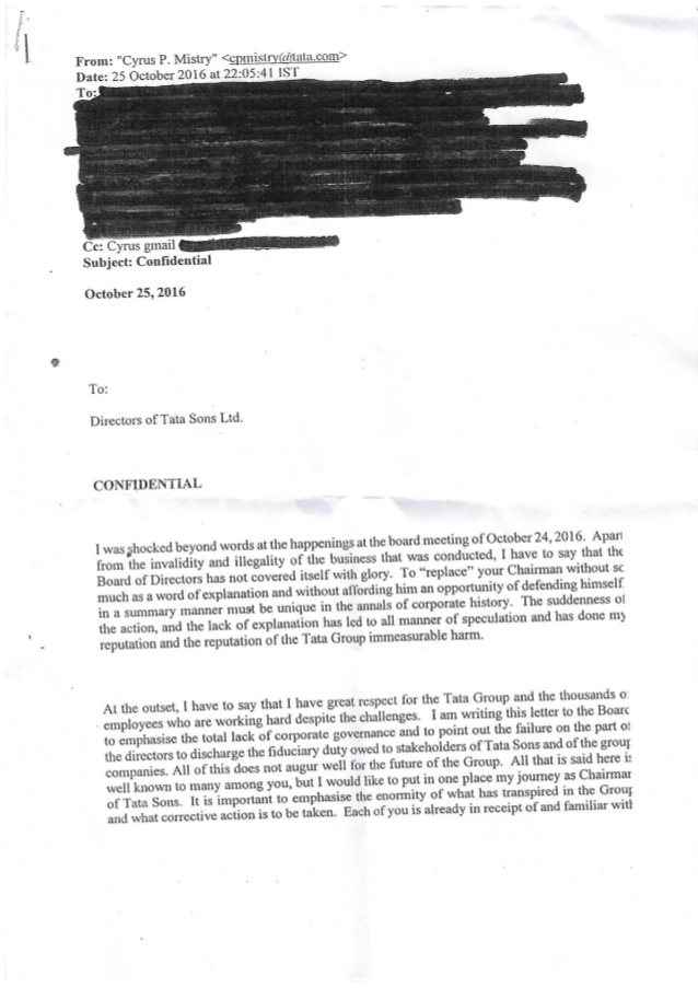 Apart from the failed Tata Nano project, Mistry also points out various other discrepancies where the management of the Tata Group is concerned. He states how he was forced to invest in joint ventures with both Air Asia and Singapore Airlines while also questioning the group’s dispute with DoCoMo and drew attention to the acquisition of Searock properties in Mumbai which was purchased at highly inflated prices. Read the full letter below: