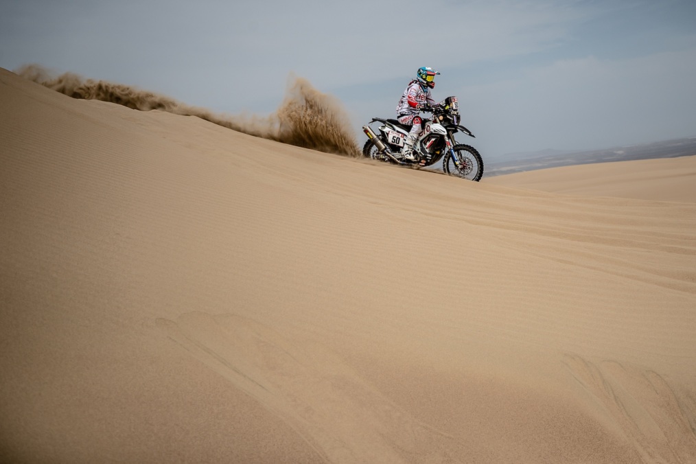 Oriol Mena continued his good run with yet another solid performance. Oriol Mena (Comp No: 7): “It was a good stage for me as my hand and knee felt better and allowed me to pick up some rhythm. About 50 km from the finish, the conditions became really windy and dusty making it difficult to see anything. I rode safely, followed the roadbook and focused on crossing the finish line. I am happy to end another day on a positive note. One day less to the finish now.”
