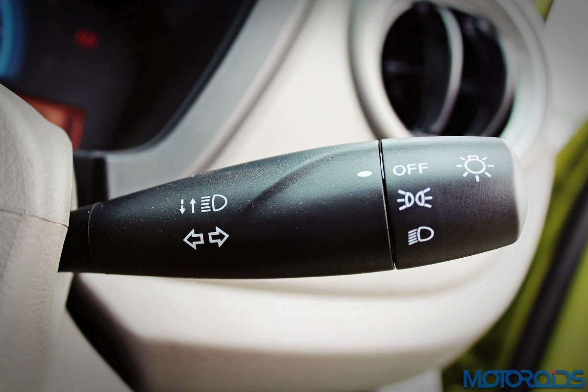 The dashboard is a simple, plasticky affair lined with three exposed storage compartments, which come in handy especially if you want to chuck your knick-knacks around. For the more valuable stuff, there’s a tiny glove compartment on the passenger’s side. A piano black insert on the center console is the dashboard’s only ‘premium’ call. It hosts the basic music system which just supports Aux-in and USB connectivity, and blares out feebly through four speakers. Manual AC controls, three round air vents with air flow control, one oddly shaped one in the middle with no air flow control (to direct 50% of the air flow to the rear passengers), a 12V charging socket and a couple of bottle holders on the floor console round things off. Interior storage for bottles is decent, with space for two 1-litre bottles and one 500-ml bottle, while the door pockets are strictly for storing flatter stuff that aren’t bottles.