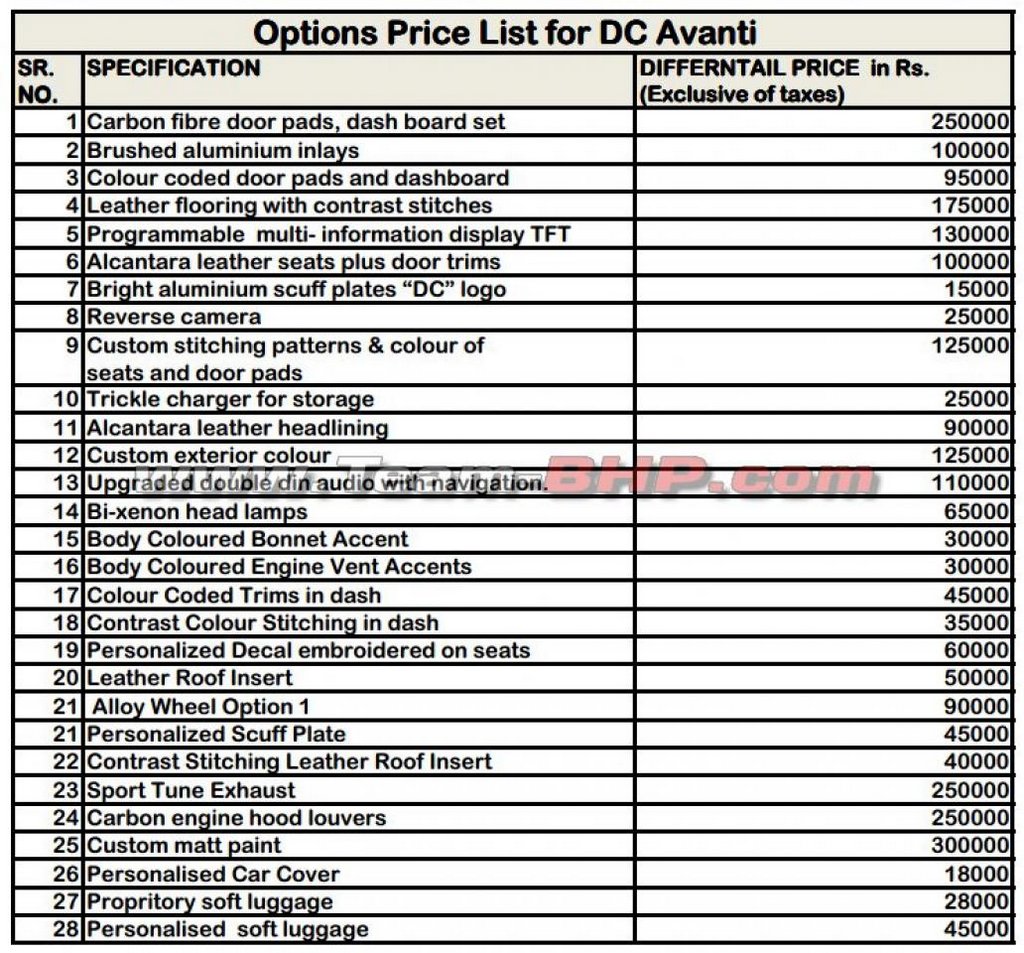 Options (note how ridiculously overpriced some of them are;DC does a Porsche):