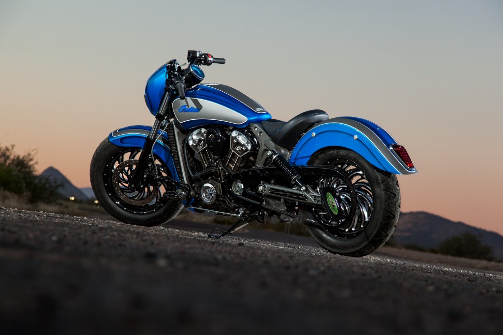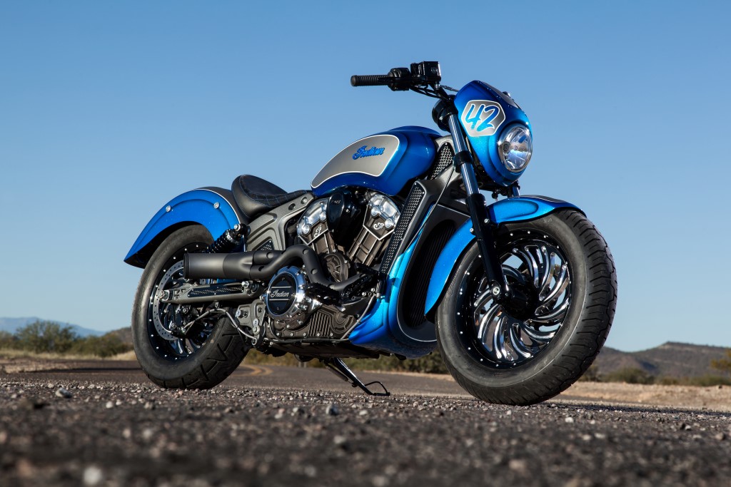 If the 2015 Indian Scout in stock form didn’t manage to rattle a few heartbeats, Dirty Bird Concepts have sprinkled the exemplary Scout with more dash and oomph. Dirty Bird Concepts owner, John Shope says “When I saw the new Scout I knew it was going to be a real player on the market – and when I had a chance to ride it – I was totally blown away by how great the engine and handling is.” Excited, he kickstarted the customisation calling it “Scout 42”.