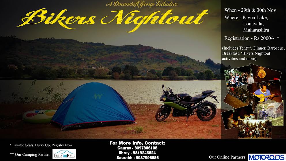 Due to a well received response to the event, the Bikers Nightout has been organised again on 29th and 30th November. This time, the event will take place on the banks of Pavna Lake in Lonavala, Maharashtra. The location has been provided by “TentsOnRent”. The second Biker Nightout event is limited to 40 bikers. The registration fee for the event is Rs 2,000 which includes tents, dinner, barbecue, the ‘Bikers Nightout’ events, breakfast, band performance and much more. Since there is a limit on registrations, the same will be done on 1st come 1st serve basis.