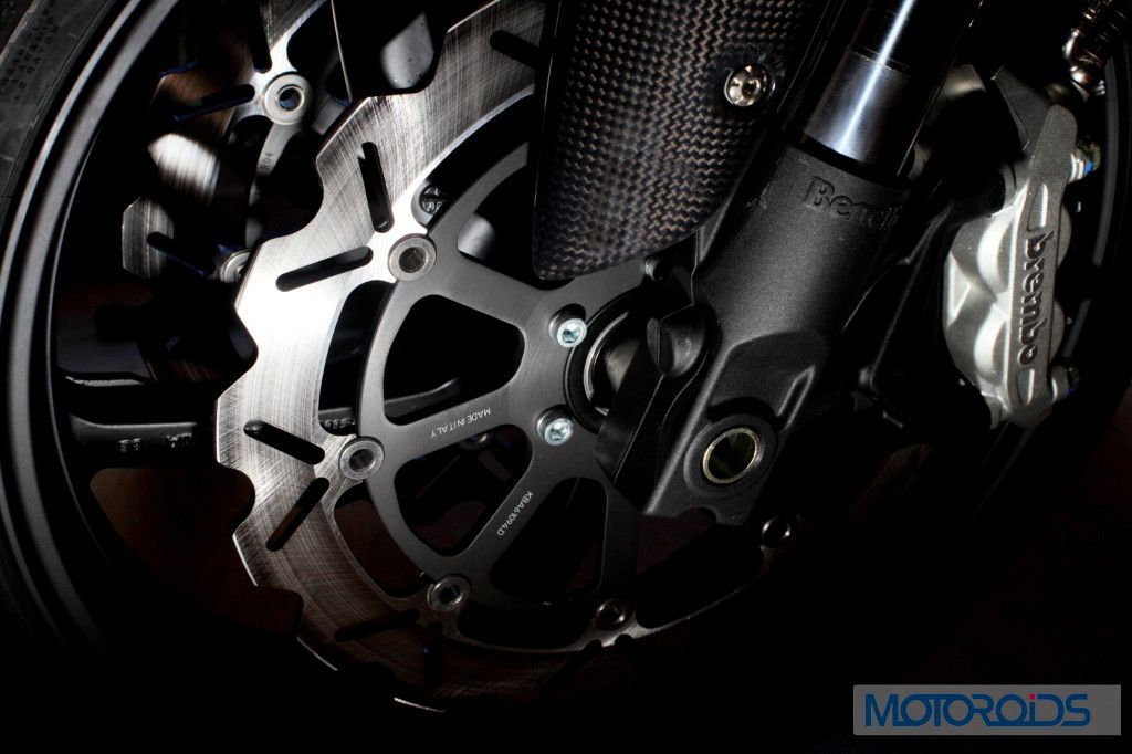 Front Brake Twin ø 320 mm floating discs with radial mounted Brembo 4 piston calipers
