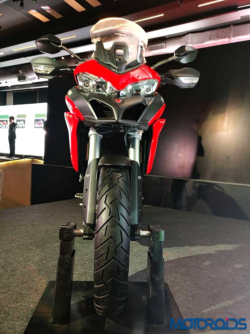 While it gets the Multistrada 1200 headlight design, illumination duties are performed by conventional illuminators instead of LED units on bigger models