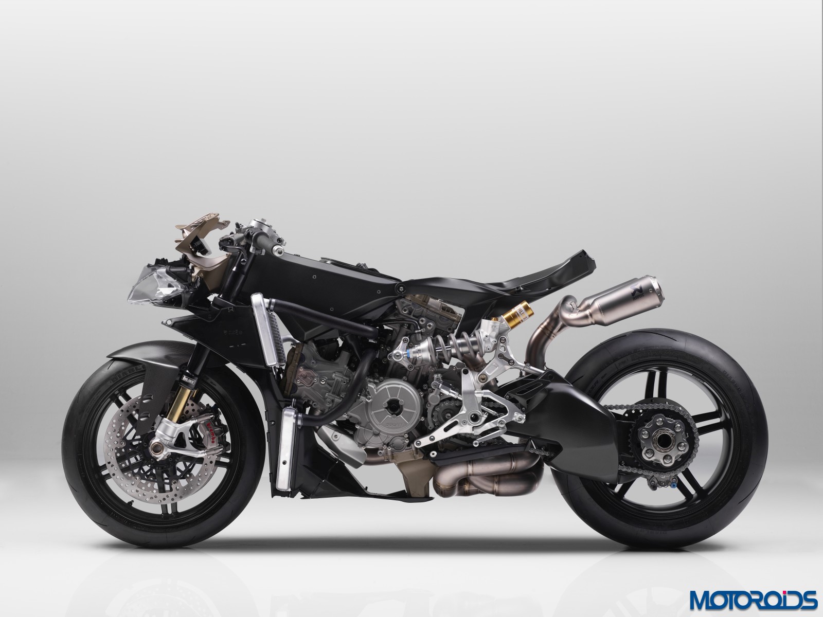 That’s it with the light weight part. Here’s what rests underneath that carbon fibre skin. The 1299 Superleggera gets the highest-performing version of the Superquadro. Thanks to its 215 hp, the desmodromic engine on the 1299 Superleggera is the most powerful factory twin-cylinder ever built. lightweight body and that serious fire power gives the motorcycle a Herculean power-to-weight ratio.