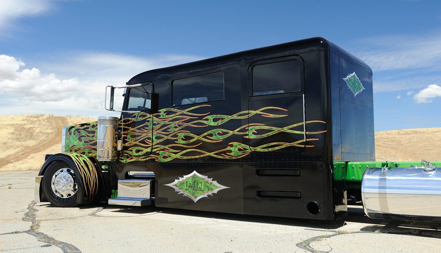 The truck was treated to load of green shade with chrome- starting off from the engine finished in the two tone combo to the chrome finished wheels and chassis in green. Two 7 inch chrome exhausts were fixed on the side skirts to add to the styling quotient.