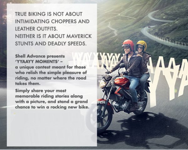 Earlier this month, we reported that Shell Lubricants have come up with a new campaign that urges you to share some unforgettable moments you have had with your bike and have your story reach out to thousands of like minded bike aficionados. Also, Shell Advance YyayY Campaign provides you with a chance to win prizes like a new Bajaj Pulsar 150! Not just this, they are also giving away prizes on daily and weekly basis. And the icing on the cake? Motoroids will feature your stories on its site and the author of the best ‘moment’ will get prizes worth INR 10,000. This prize for readers of Motoroids will be sponsored by Shell India.
