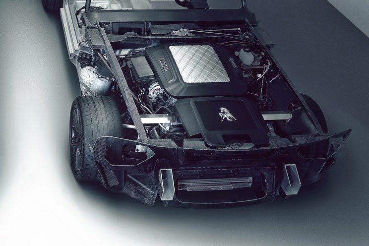 The looks are straight out of the 60’s, from a Mustang Fastback to be precise, but the body and frame are all new, with an all aluminium construction. Below the hood sits a 6.2-liter LS9 V8 supercharged engine from the Chevrolet Corvette ZR1 developing 640hp at 6,500 rpm and 605 lb-ft (819 Nm) of torque at 3,800 rpm. This Mother-of-God power-plant is mated to a rear-mounted 6-speed dual clutch gearbox.