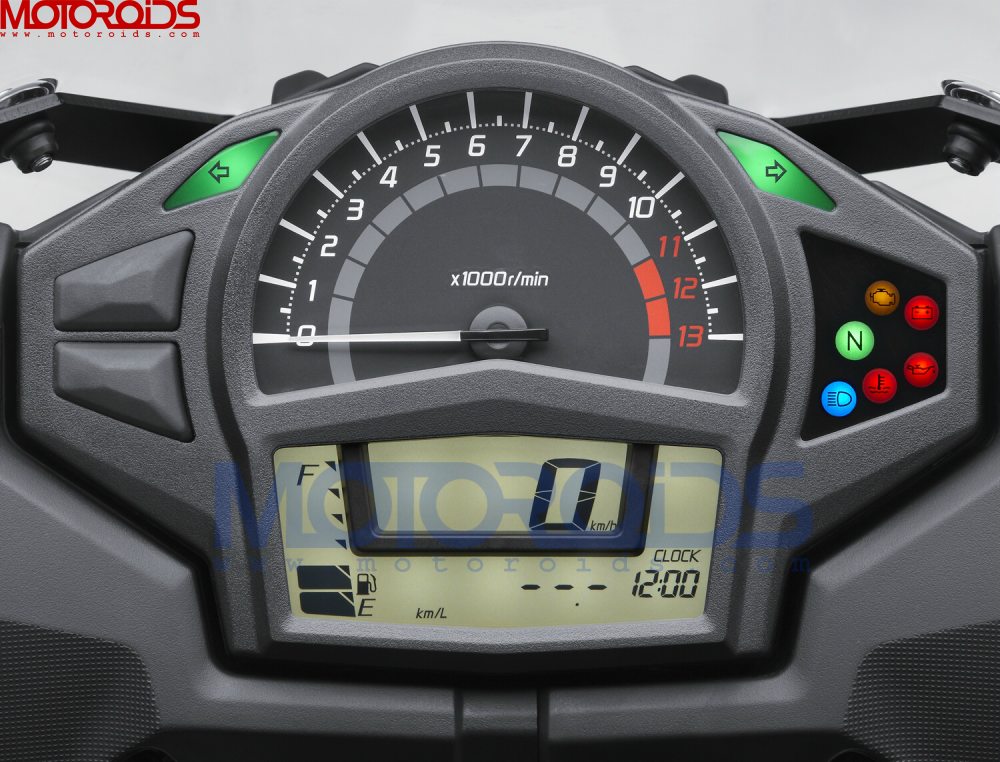Design wise, everything from the front fairing, to the windscreen visor, to the fuel tank to the tail section has been given a thorough overhaul. While the 2012 Ninja 650R shares it proportions and dimensions with its predecessors, the detailing and panel shapes are hugely different endowing the new 650 with a sportier, sharper and a more angular look. Instrumentation is all-new too. The all digital speedo has given way to an analog-digital combo with the tachometer now being represented in the good old analogue fashion.
