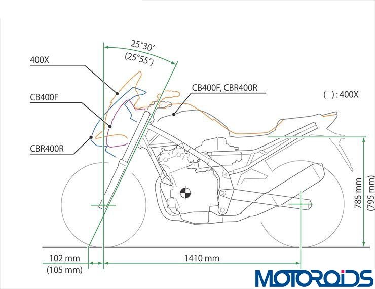 | Suspension front | 41mm Telescopic- 4.3 inches travel (CBR400R, CB400F), 5.5 inches travel (CB400X) |